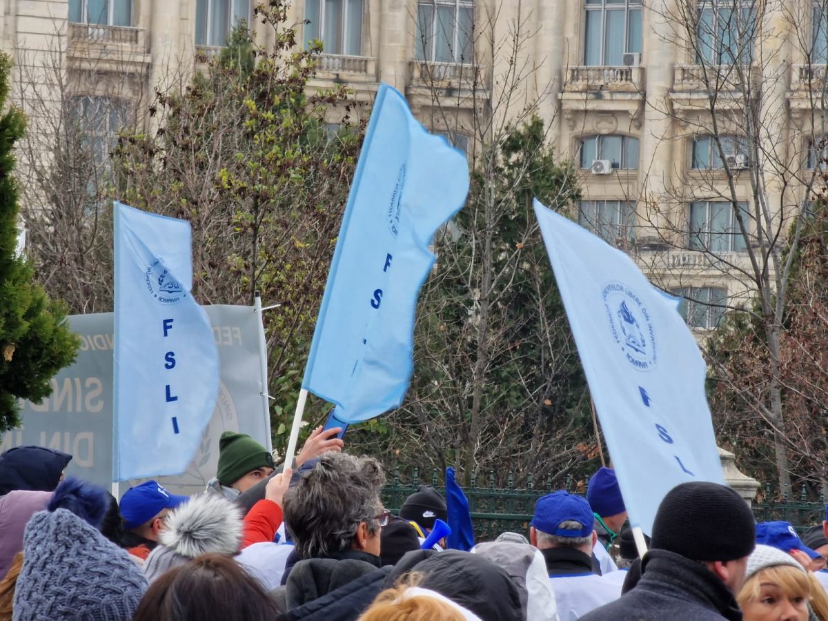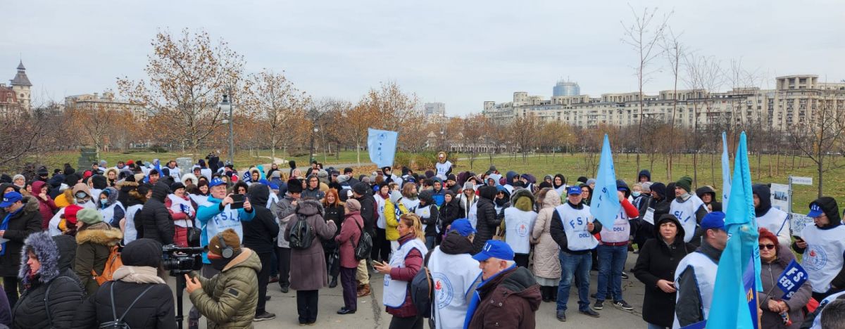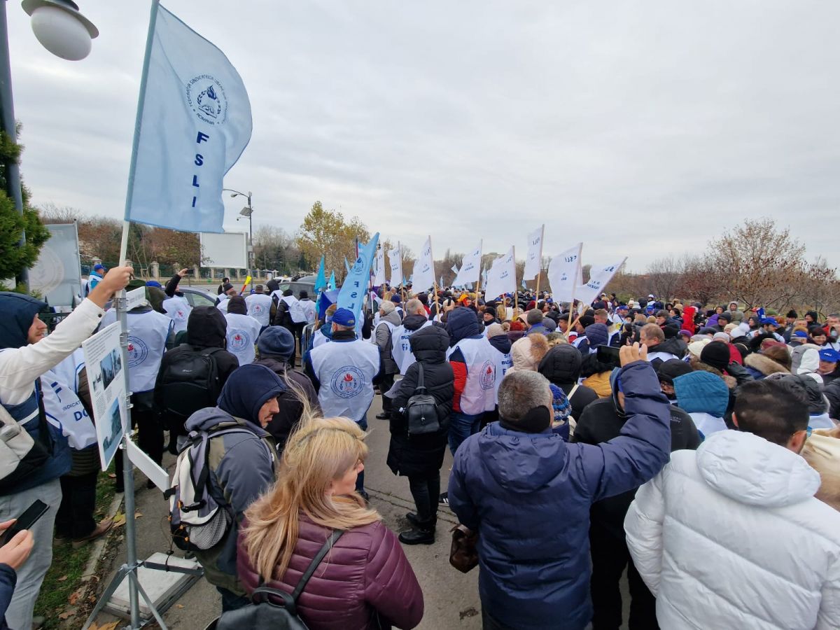 Sute de angajați au protestat miercuri în fața Parlamentului României.