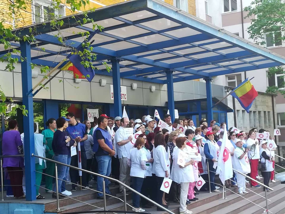 Angajații din sănătate au ieșit din nou astăzi, 7 mai 2018, în fata spitalelor pentru a-și cere drepturile.