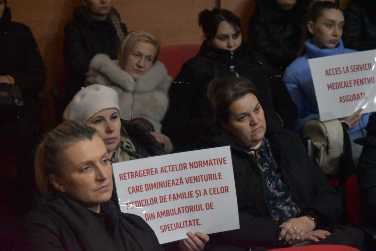 Medicii au venit cu pancarte în mâini pentru a trage un semnal de alarmă asupra nemulțumirilor din sistem. Aceștia au fost reprezentanți de Liviu Cîmpanu, președinte Patronatul Medicilor de Familie și Paul Șerban de la Asociația Medicilor de Familie.