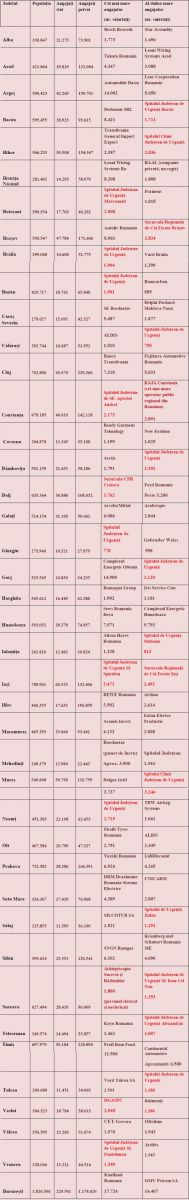 La Vaslui, de exemplu, locul 3, cu doar câțiva salariați sub compania Rulmenți, se află Spitalul Județean și situația în clasament se poate inversa oricând dacă economia va avea probleme.
