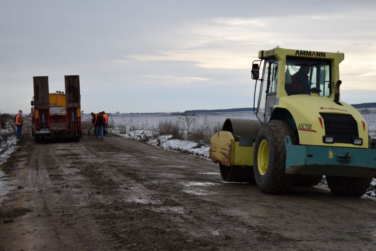 Lucrările de modernizare a Drumului Naţional 24 C au demarat astăzi cu prima etapă, cea de reprofilare a căii rutiere şi adaos de material pietros şi cilindrare, adică compactare.