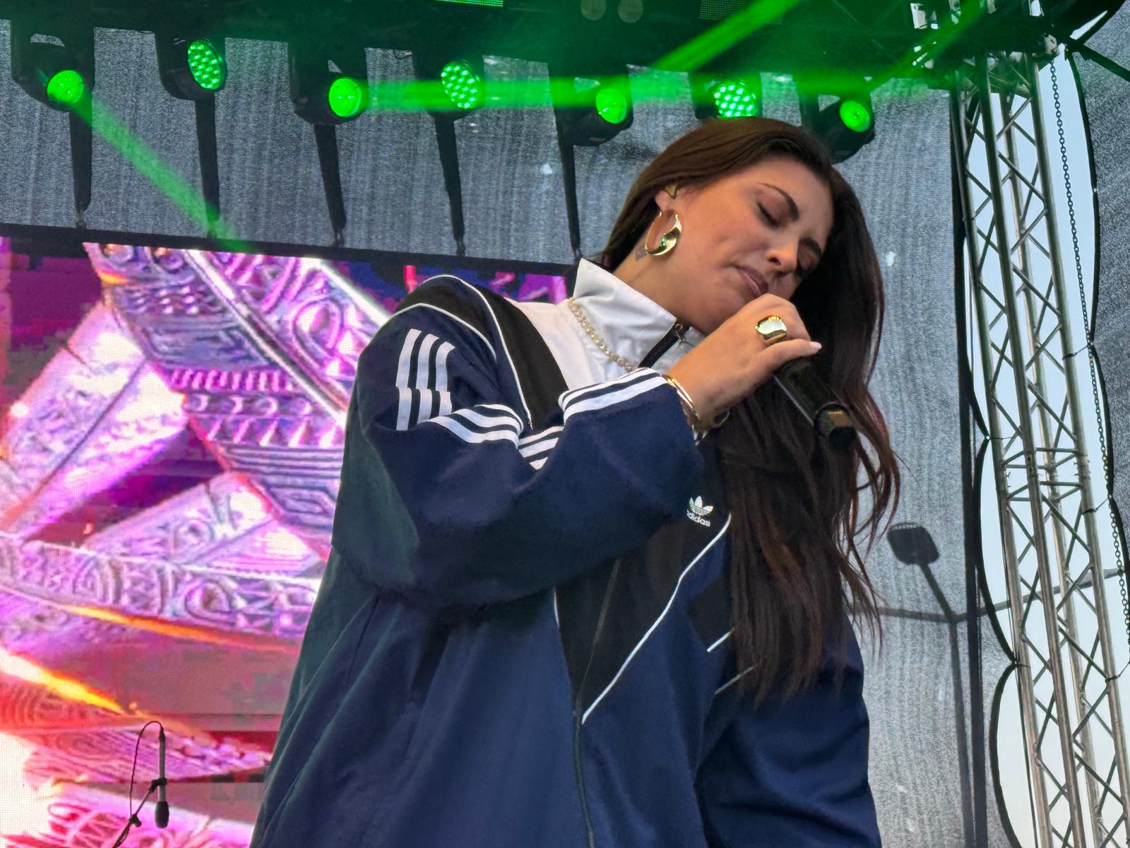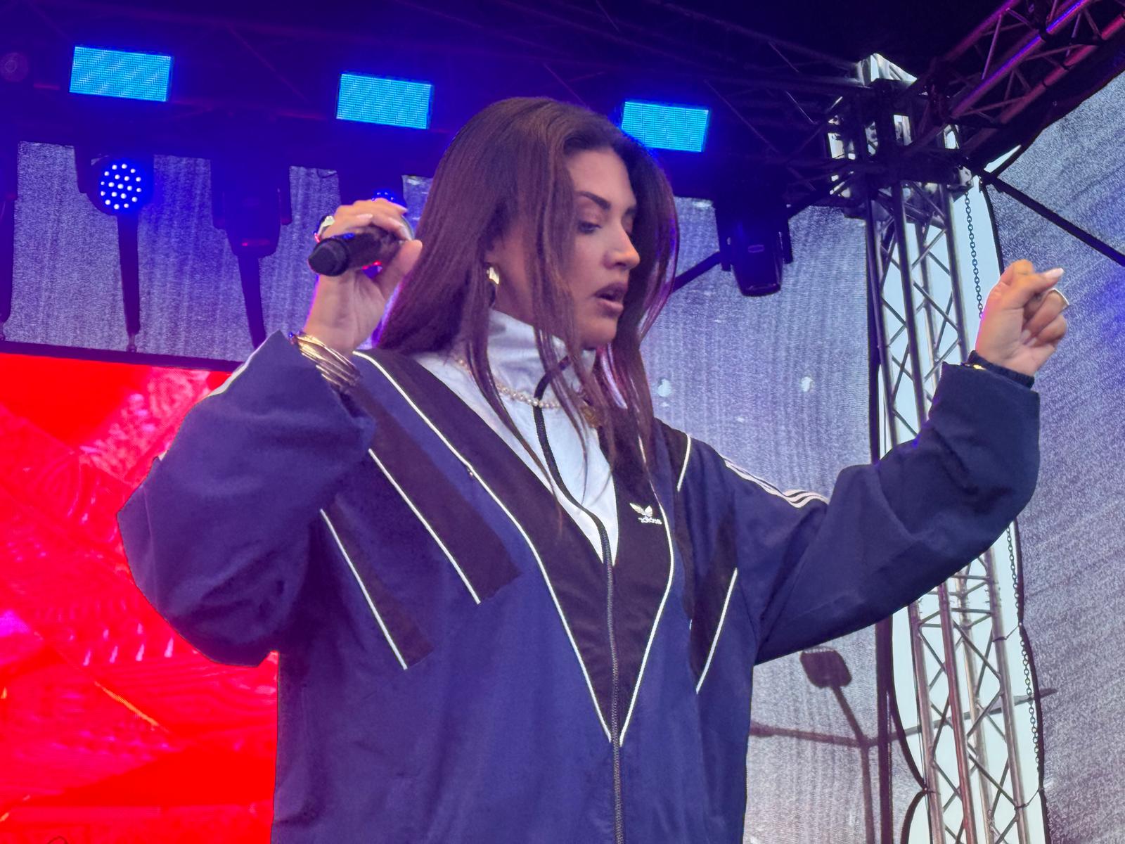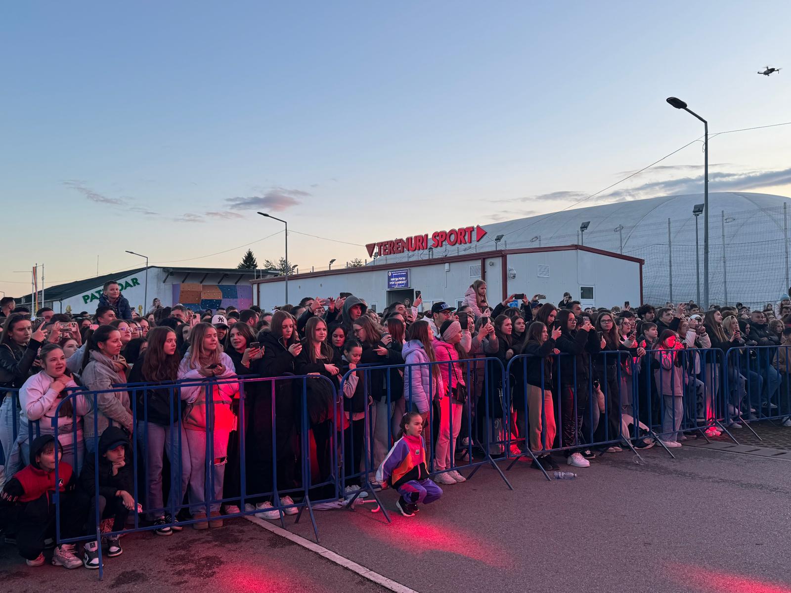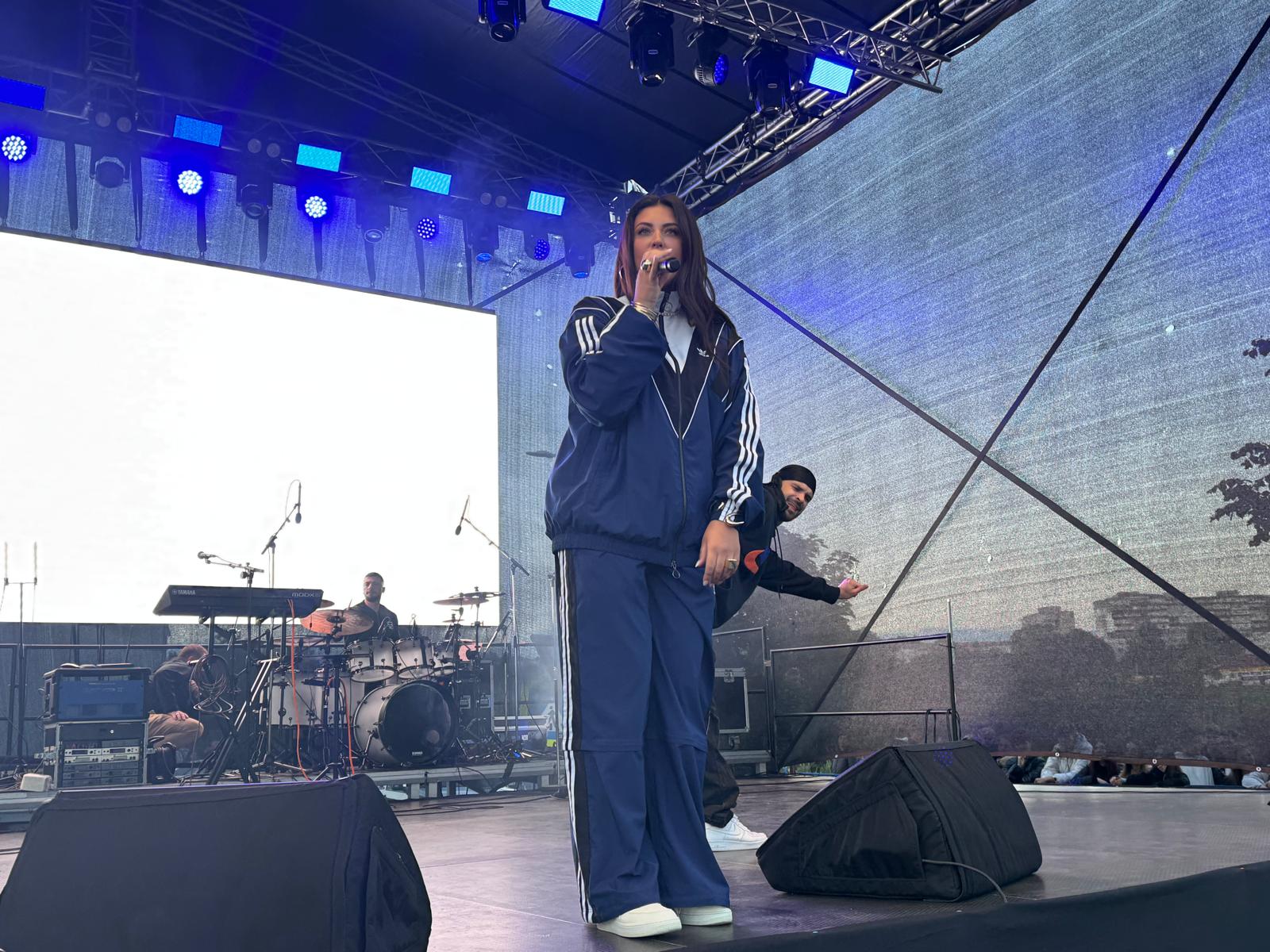 Îmbrăcată lejer, într-un trening sport, și însoțită de doi dansatori, artista a reușit să creeze o conexiune cu publicul, care a cântat alături de ea vers cu vers.