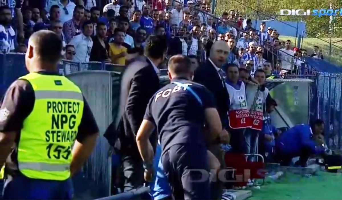 Băncile de rezerve sunt foarte apropiate de tribuna 1 şi pe tot parcusul meciului fanii alb-albaştrilor au scuipat, au înjurat şi au aruncat cu sticle spre staff-ul tehnic şi jucătorii de rezervă ai oaspeţilor. Antrenorii au reacţionat în mai multe rânduri şi au cerut arbitrilor să intervină, însă spre deosebire de meciurile de pe Stadionul Municipal, unde suporterii sunt amendaţi pentru că aruncă o pungă de seminţe sau sar un gărduleţ între două sectoare de tribune, pe “Extensiv” nu s-a luat nici o măsură.