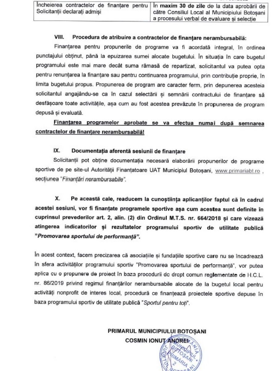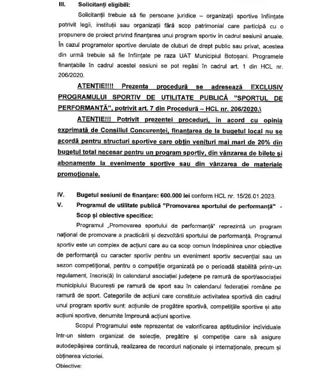precum și a Hotărârii Consiliului Local al Municipiului Botoșani nr.206 din 30 iulie 2020 pentru aprobarea Procedurii privind finanțarea programelor sportive în condițiile Legii nr.69/2000 a educației fizice și sportului și Ordinului MTS nr.664/2018 privind finanțarea din fonduri publice a proiectelor și programelor sportive, completată prin Hotărârea Consiliului Local al Municipiului Botoșani nr. 152 din 11 mai 2021.