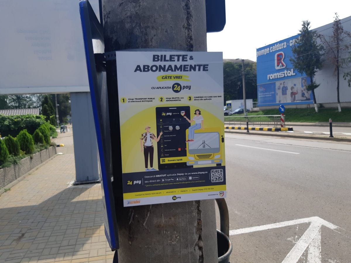 Lansată deja în marile orașe, aplicația 24pay oferă acces la o modalitate rapidă, modernă și sigură de plată a transportului în comun și a parcării, direct de pe telefonul mobil. În urma parteneriatului încheiat cu ELTRANS Botoșani și Banca Transilvania, călătorii vor putea să achiziționeze din aplicație bilete și abonamente pentru transportul în comun atât prin card cât și prin sms. Pentru parcarea autovehiculelor, achiziționarea de abonamente și bilete se poate face prin scanarea rapidă a codului QR de pe afișele amplasate în zonele de parcare. Clienții își vor putea achiziționa bilete sau abonamente în funcție de durata staționării.