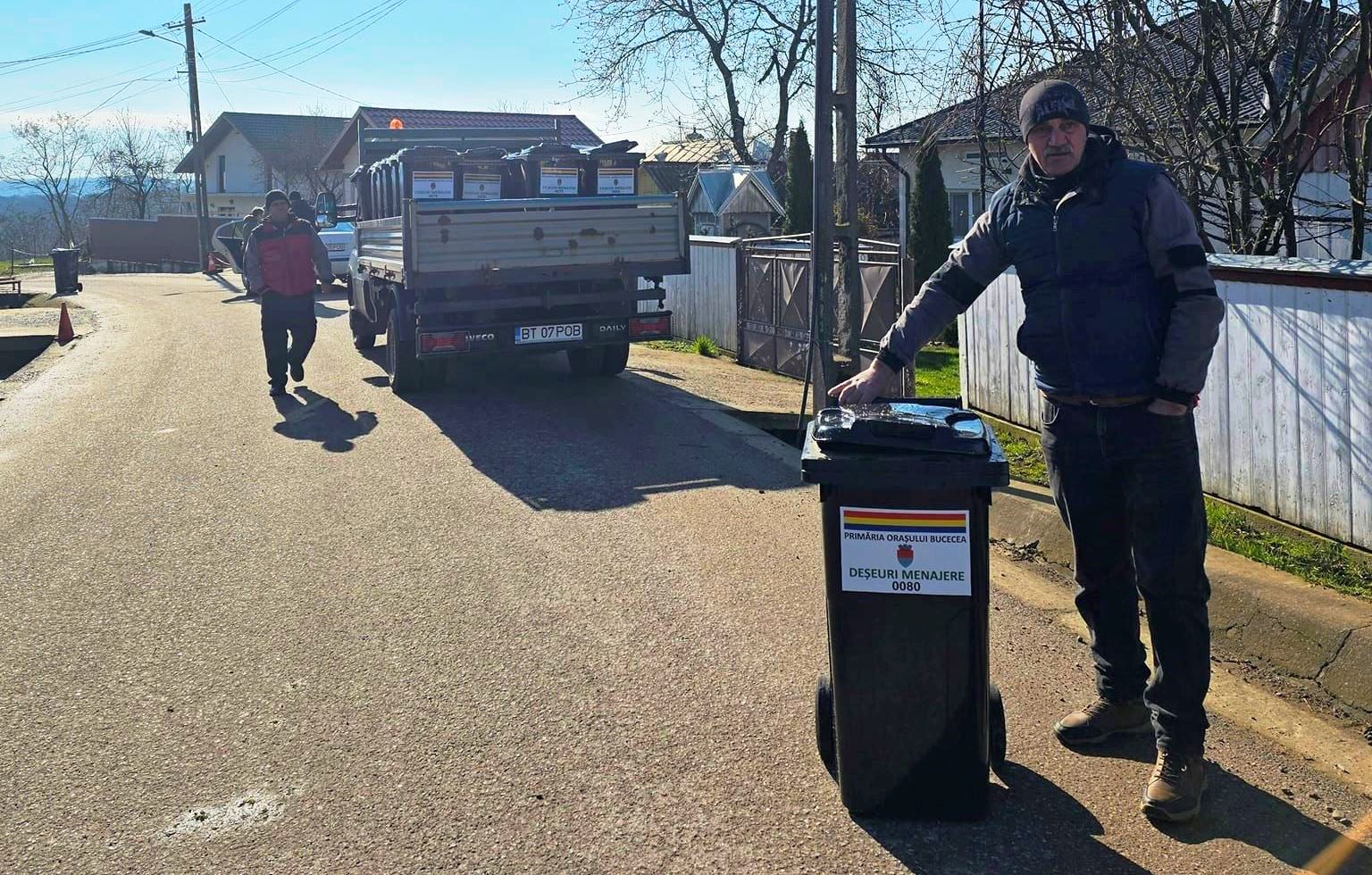 Primăria orașului Bucecea a început de astăzi distribuirea pubelelor destinate colectării selective a deșeurilor menajere. Echipa se deplasează din casa în casa pentru a încheia protocolul de predare-primire a pubelelor, dar și a pliantelor cu ceea ce trebuie să conțină.