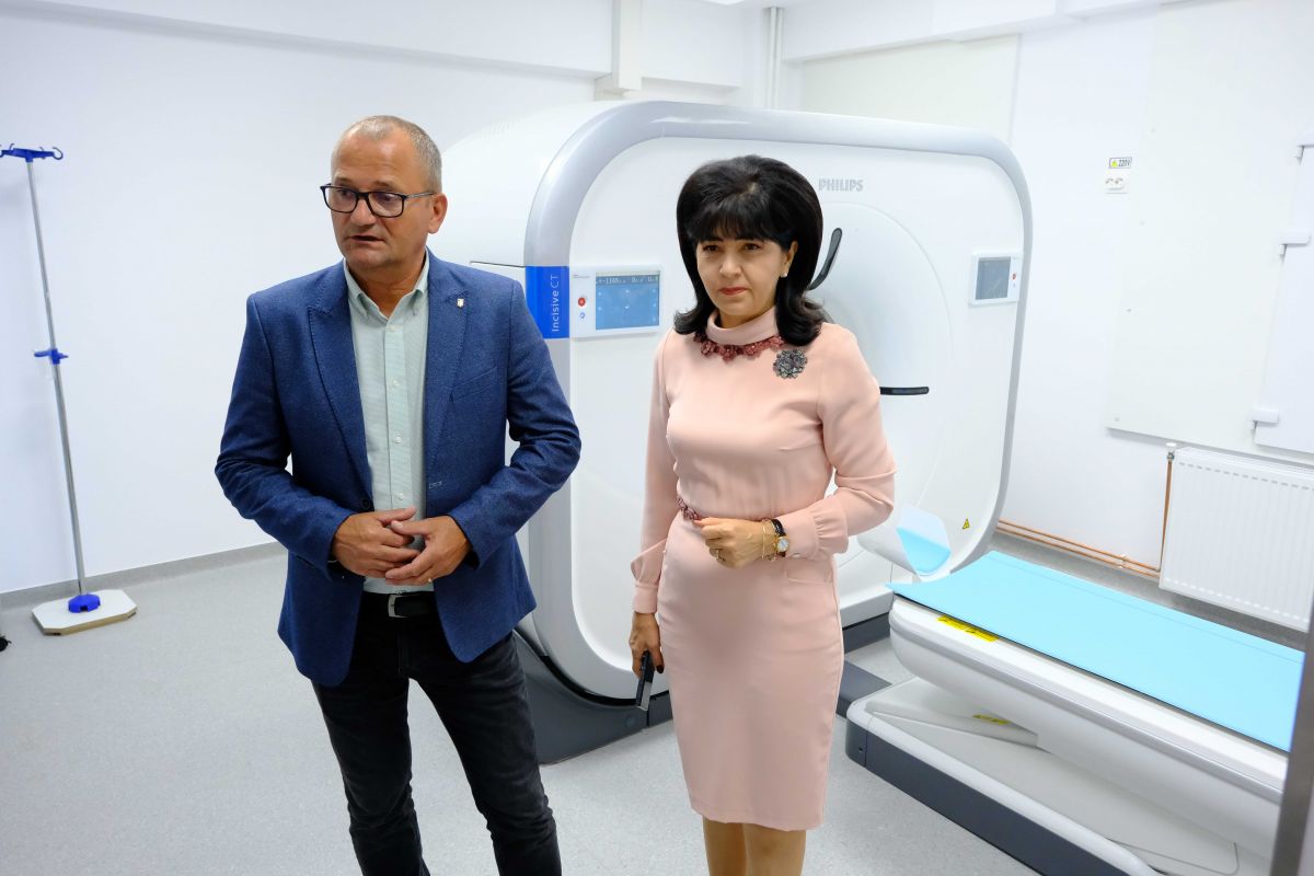 Noul CT a fost achiziționat din fondurile puse la dispoziția Spitalului de către Consiliul Județean, în cadrul unui proiect mai amplu, care a presupus și un proces de reabilitare și modernizare a Secției de Radiologie și Imagistică Medicală.