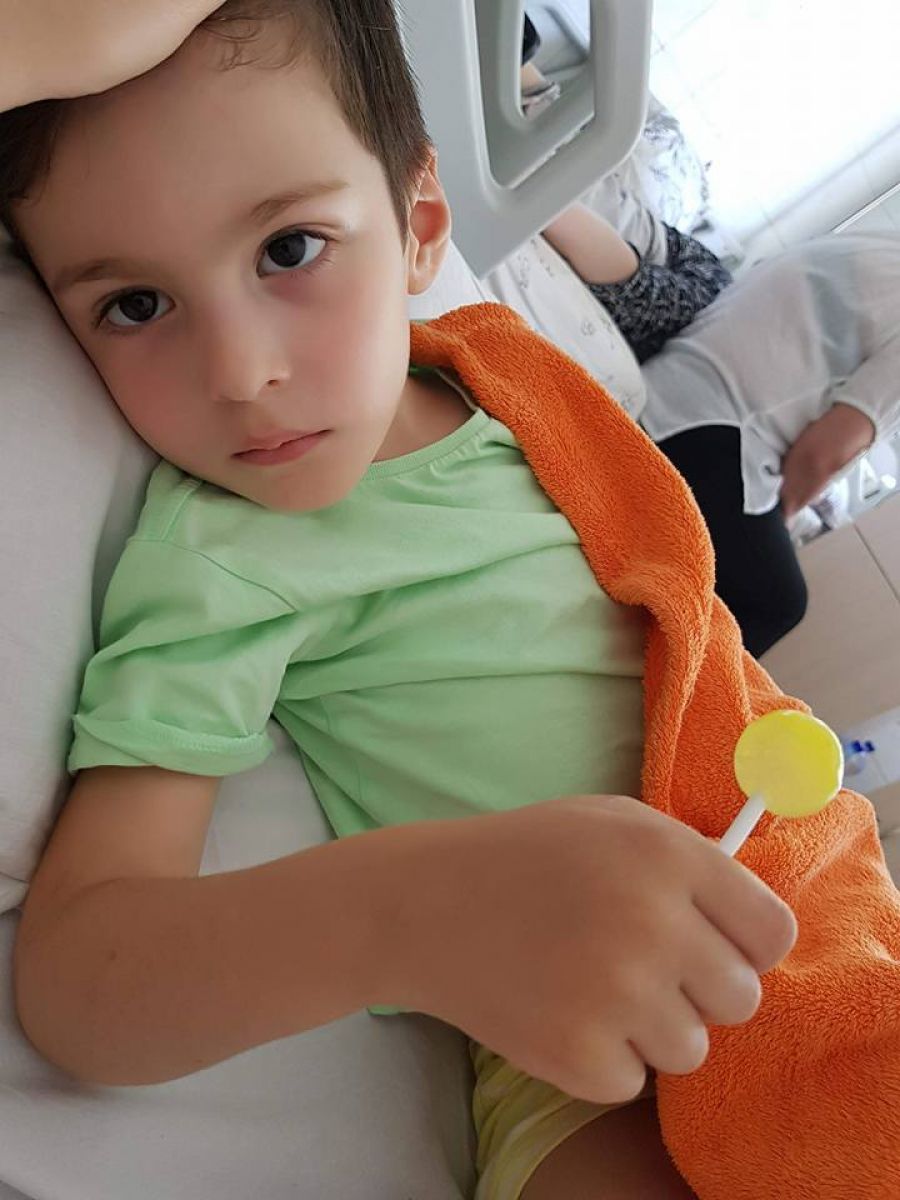 ”Prima data am fost la un control la pediatru, pentru ca avea dureri abdominale. Acolo s-au recomandat analize, iar cu o zi inainte de analize am vazut o denivelare pe corpul lui. Diagnosticul in urma ecografului abdominal a fost Tumora Wilms si ne-au trimis la Iasi. Acolo ne-au pus diagnosticul neuroblastom glanda suprarenala stanga cu metastaze hepatice, pleuro-pulmonare si ganglionare abdominale”, a spus Bianca Stincescu, mama micului print.