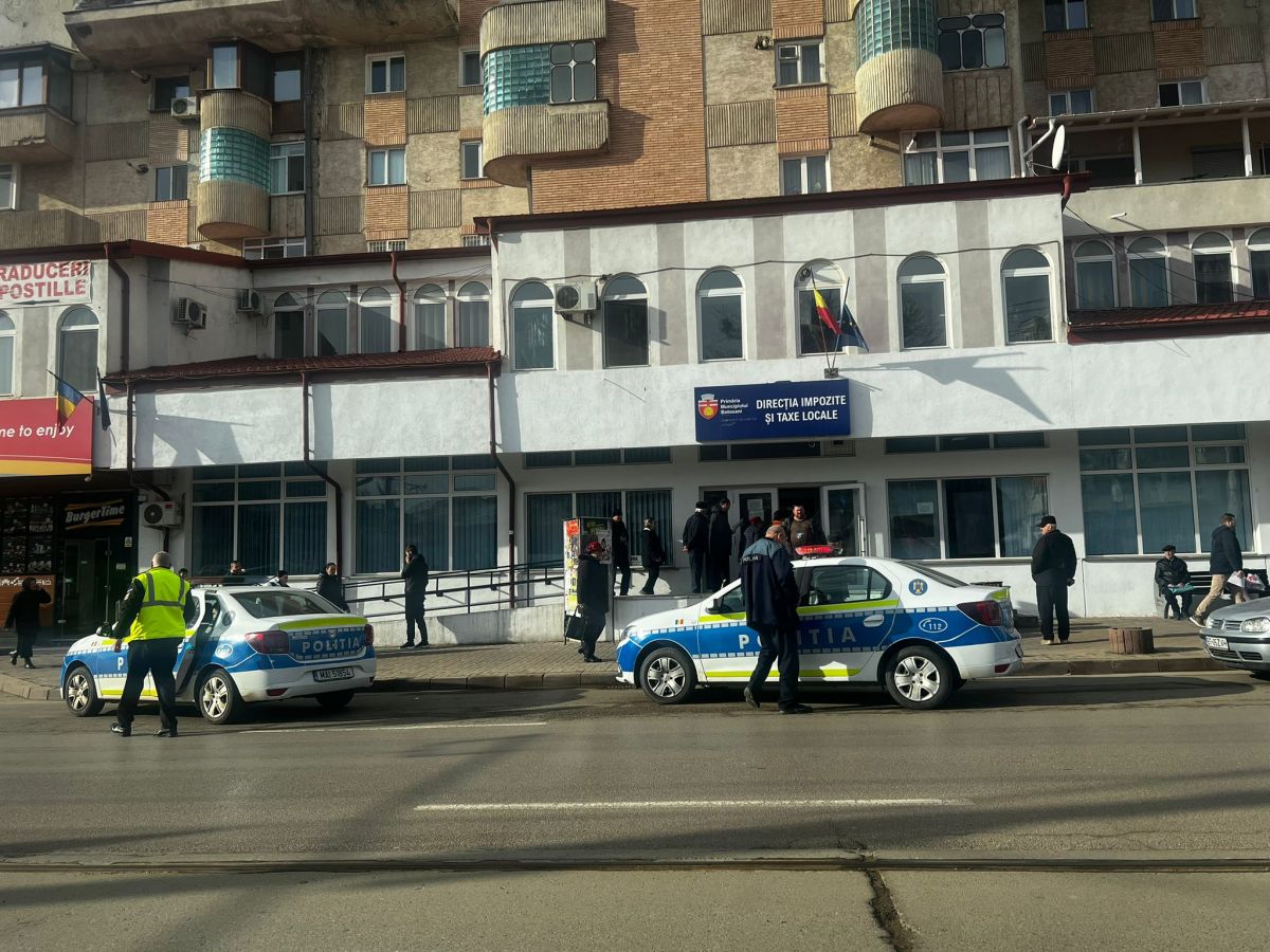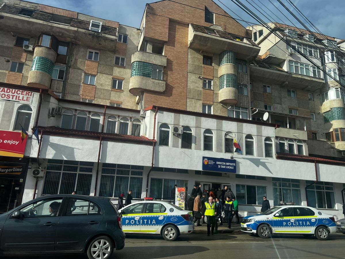 Două echipaje ale Inspectoratului de Poliție Județean (IPJ) au ajuns de urgență la Direcția de Taxe și Impozite a Primăriei din zona Pieței Centrale.