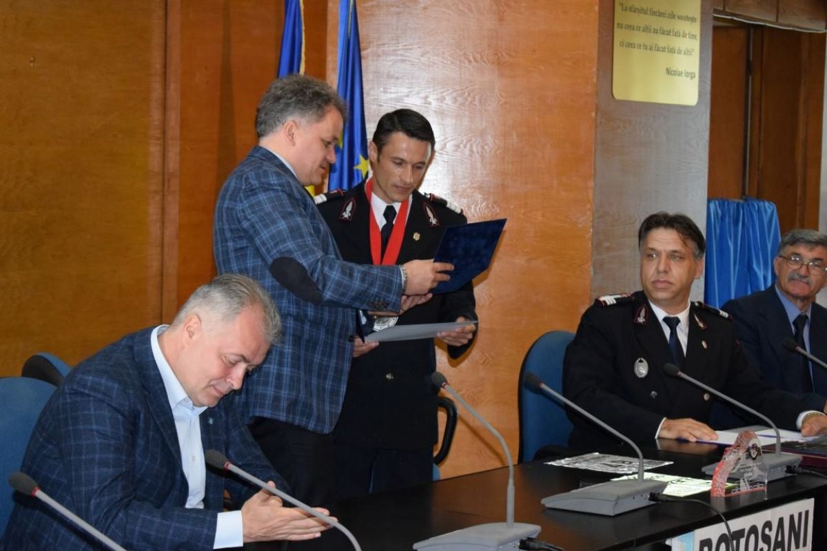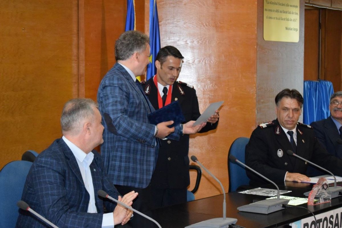 Iulian Rotariu a primit plachete și diplome de excelență din partea Prefecturii, Consiliului Județean, Primăriei Botoșani și Inspectoratului pentru Situații de Urgență. (G.E.)