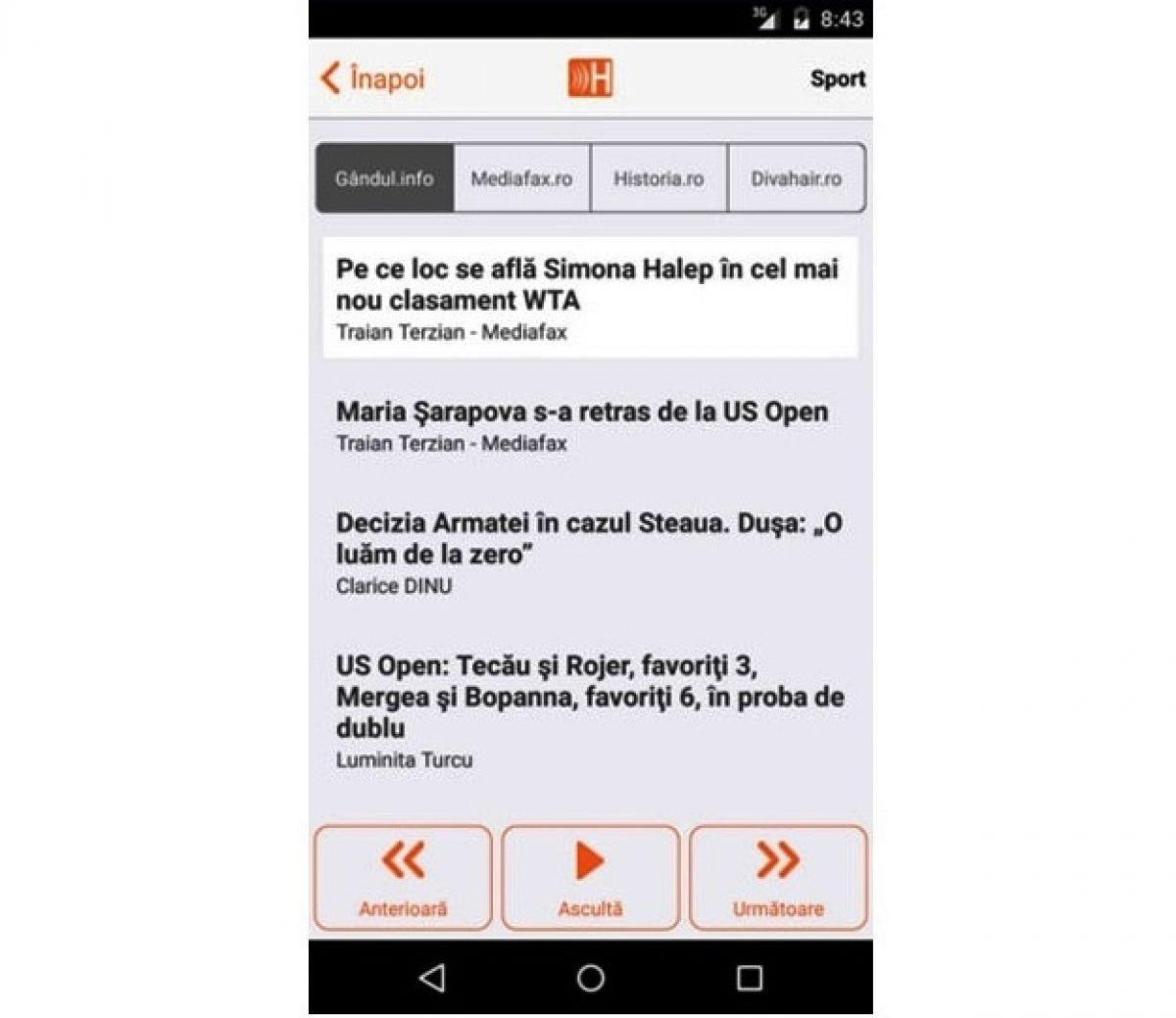 Persoanele cu deficienţe de vedere pot accesa în timp real ştirile zilei, prin aplicaţia "Hear News", care redă în format audio informaţiile publicate de patru website-uri: www.mediafax.ro, www.gândul.info, www.historia.ro şi www.divahair.ro.