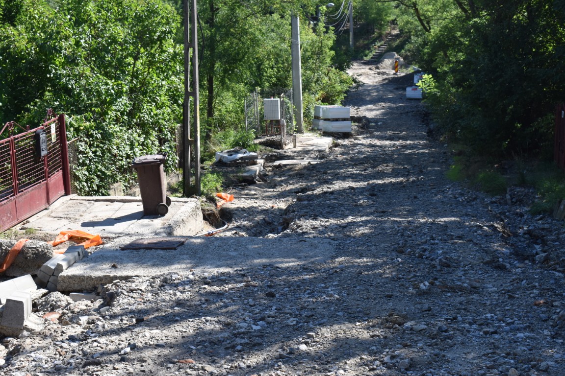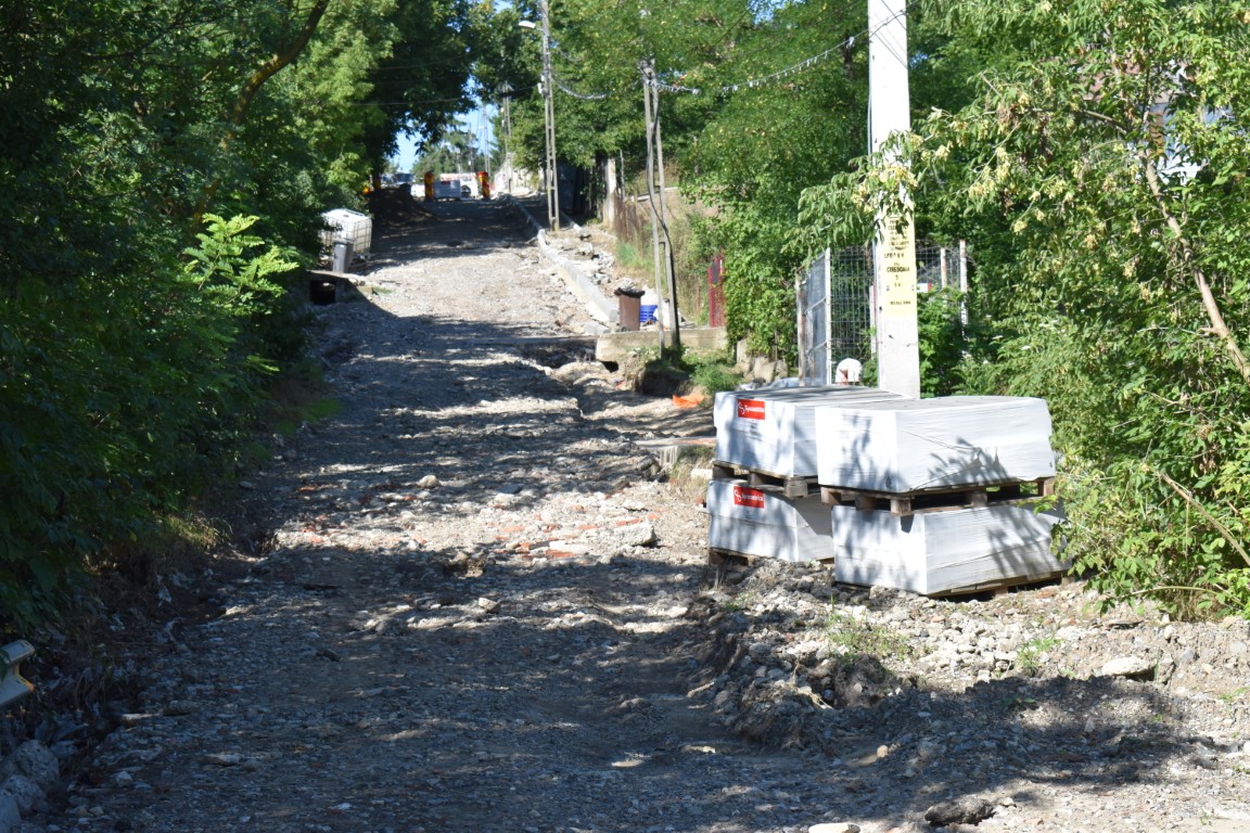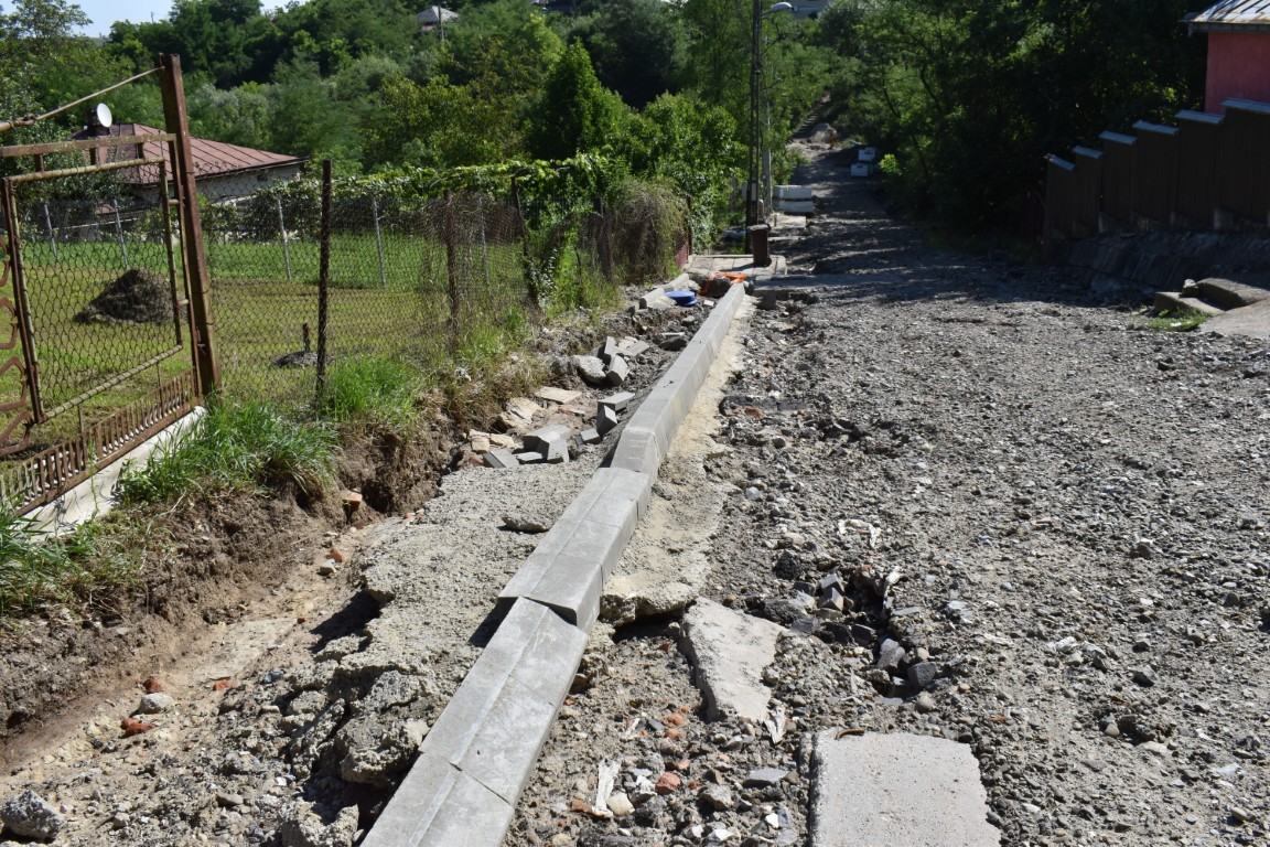 Muncitorii firmei care reabilitează strada au început cu partea de trotuare și au montat bordurile pe un tronson din stradă. Pe alocuri, chiar și pavelele. În urma vijeliei de marți, o bună parte din munca lor a fost distrusă.
