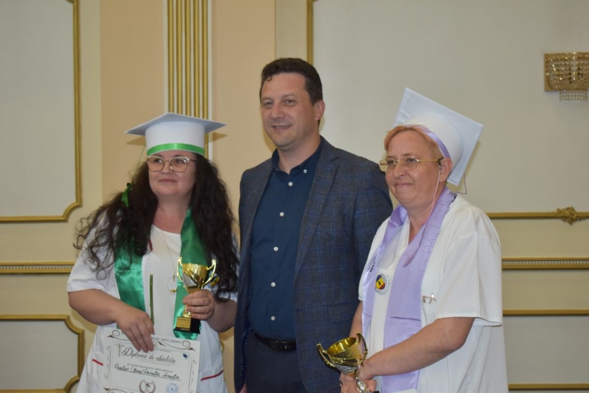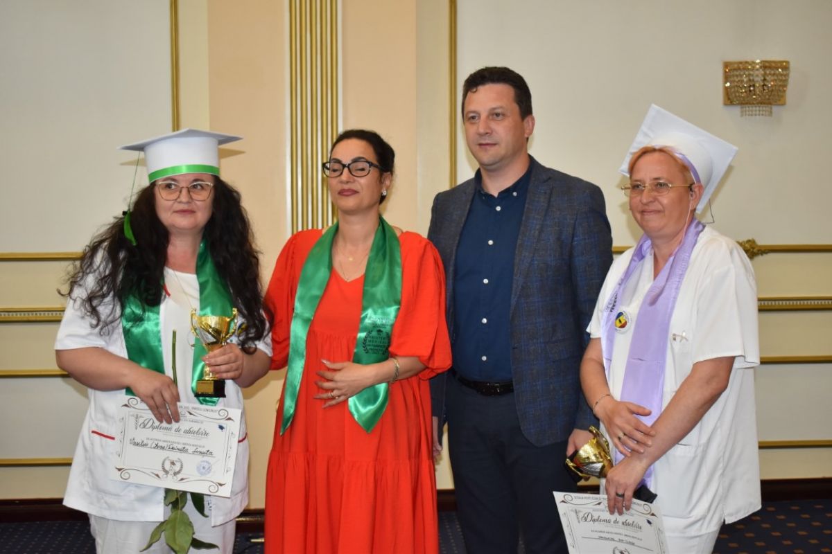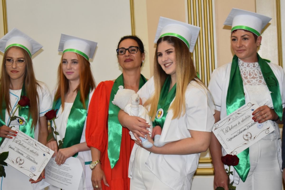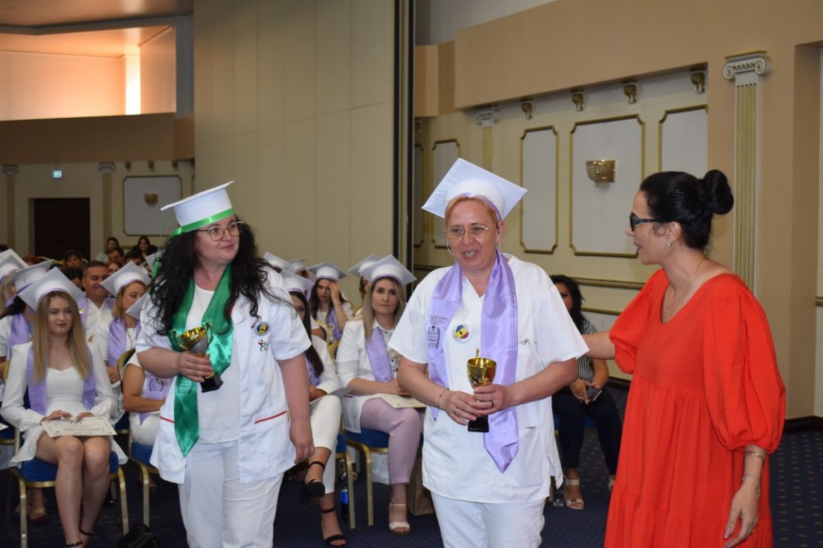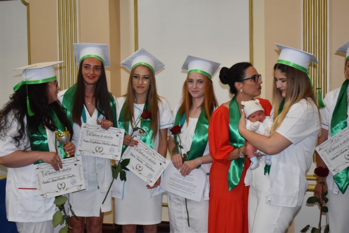 Au fost premiate și cele două șefe de promoție, ambele absolvind cu media 9,71. Este vorba despre Lenuța Ivaș pe specializarea farmacie și Claudia Manolache pe specializarea medicină generală.