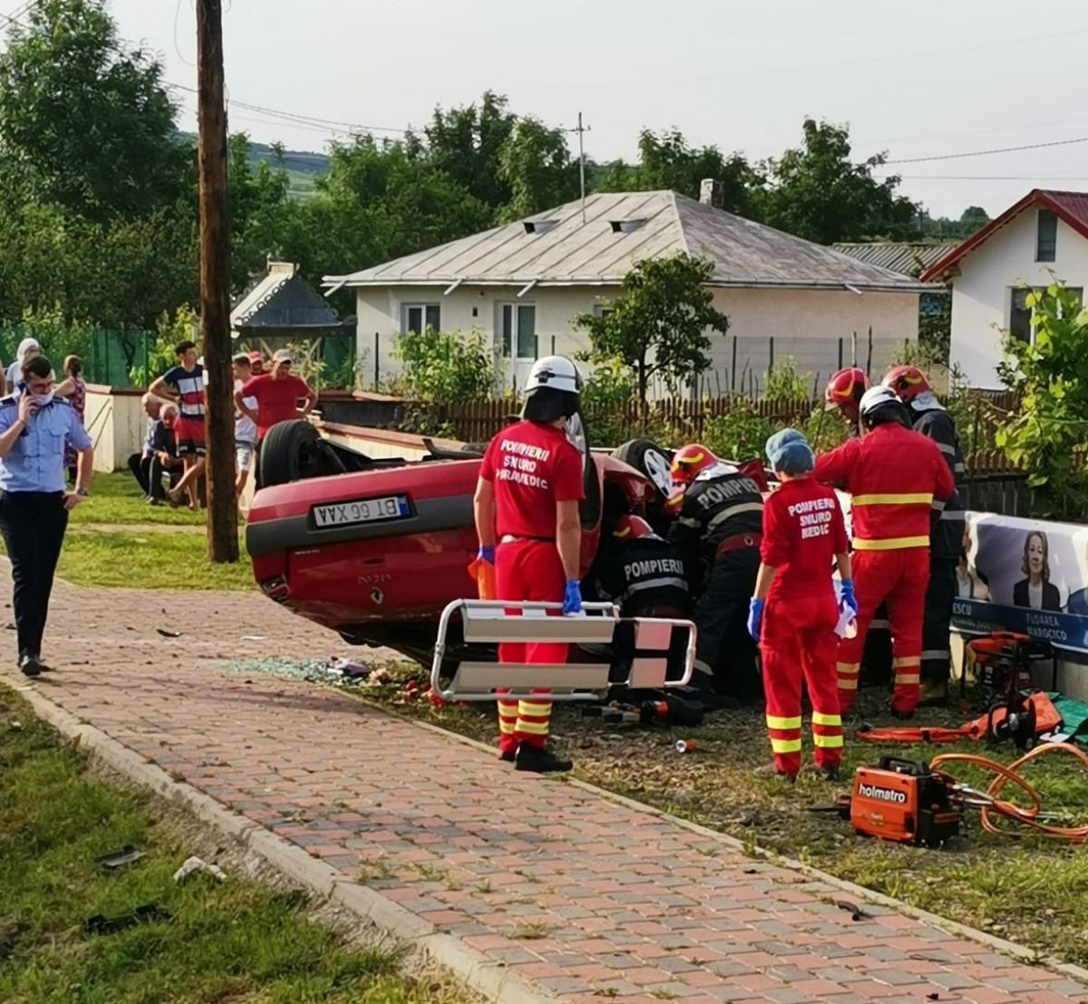 Și așadar a fost și singura victimă. A fost nevoie de intervenția pompierilor pentru că a rămas încarcerată în autoturism. Avea o fractură deschisă.