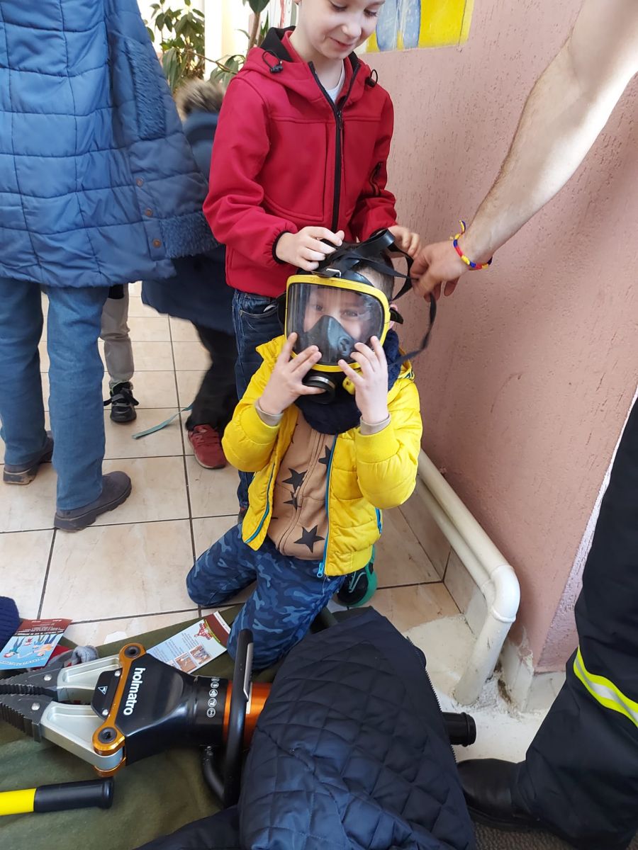 Mulți dintre ei au aflat cum se protejează servanţii pompieri pe timpul incendiilor cu ajutorul aparatului de respirat cu aer comprimat și a căştii de protecţie.