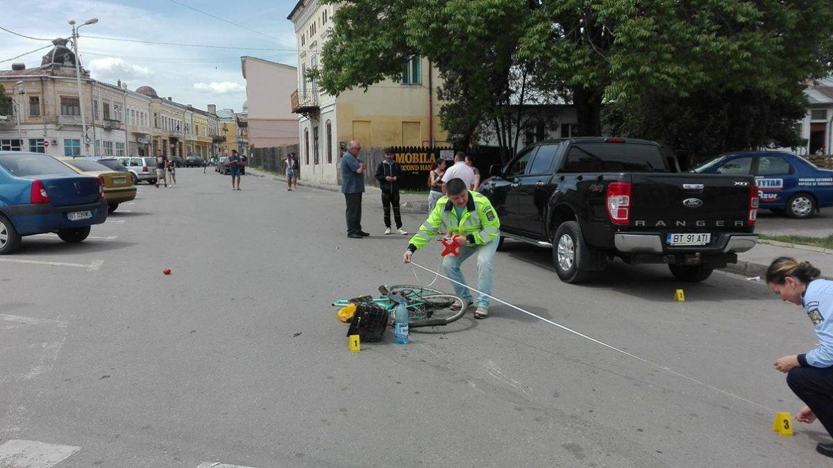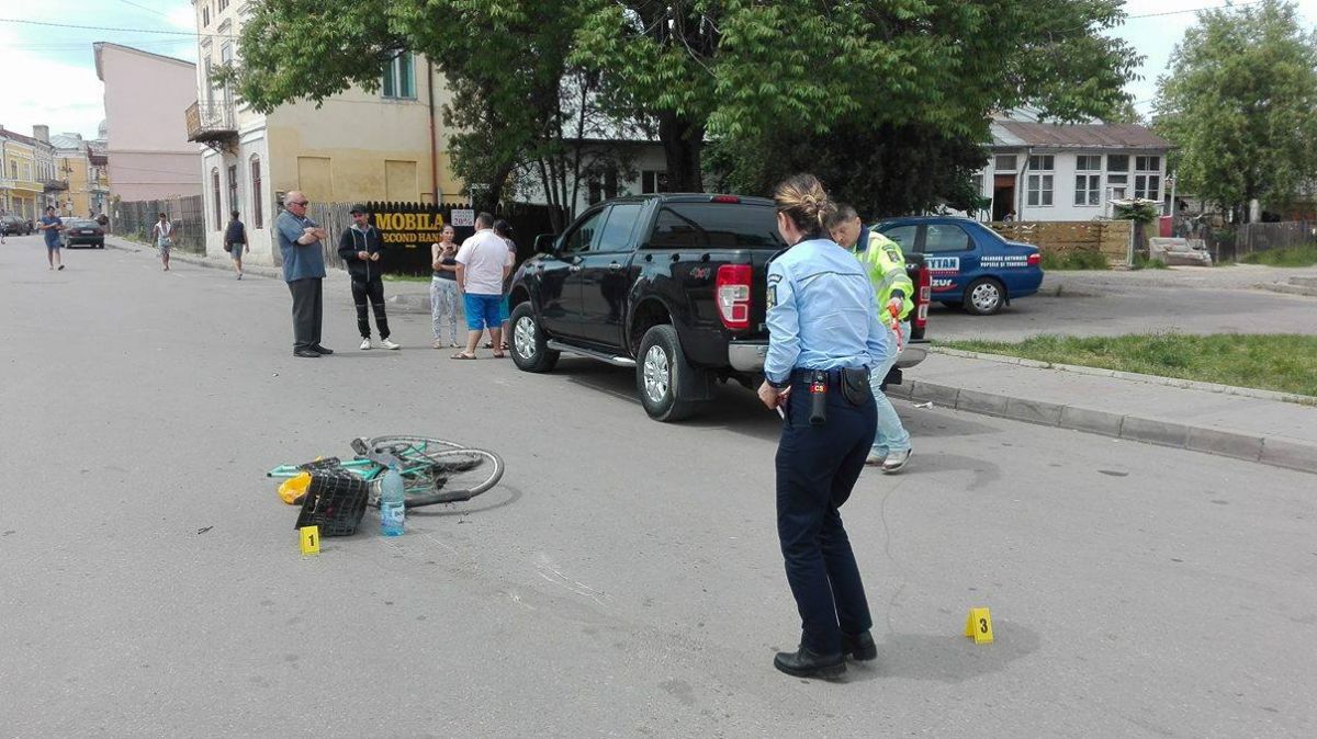 O maşină de teren a lovit un biciclist sâmbătă la amiază în Centrul Vechi al municipiului Botoşani. Accidentul a avut loc pe trecerea de pietoni de la fostul Cinema Luceafărul.