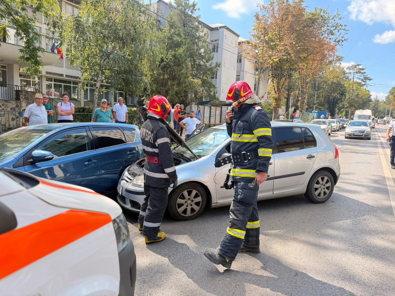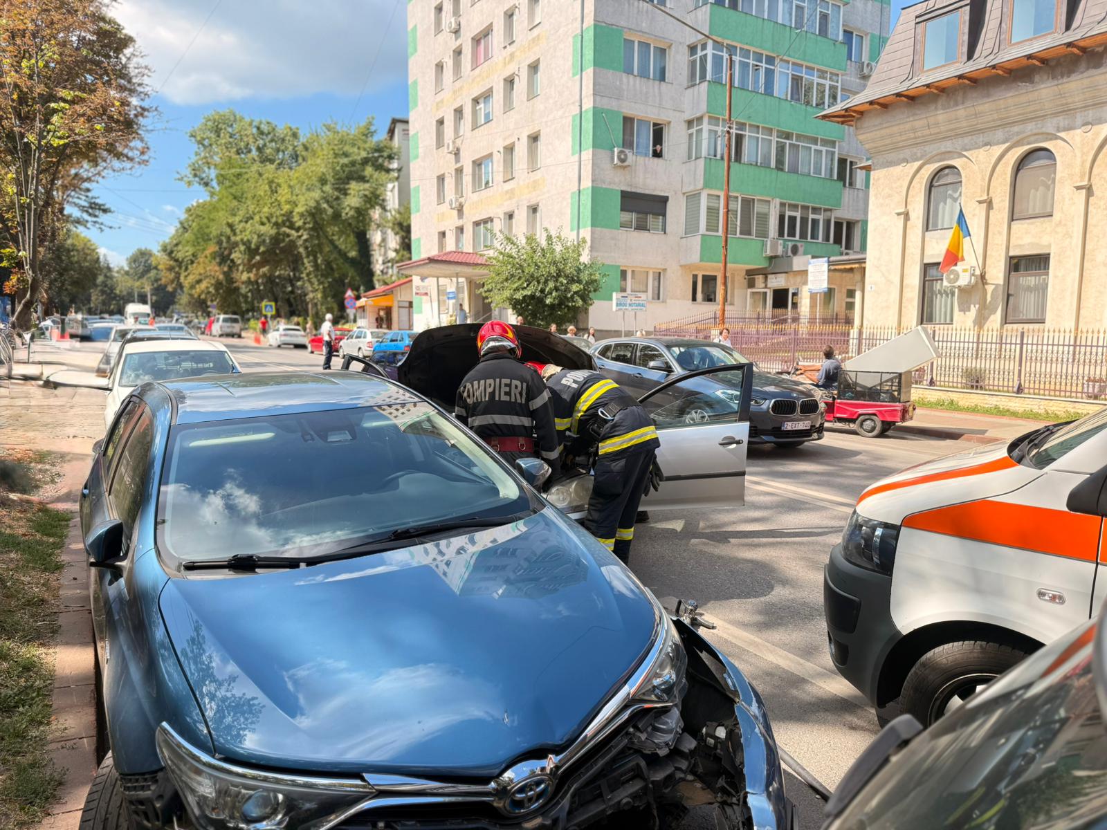 Salvatorii s-au deplasat cu o autospecială de stingere și descarcerare și au constatat că autoturismul a lovit alte două mașini parcate pe marginea străzii, după ce șoferului i s-a făcut rău la volan.