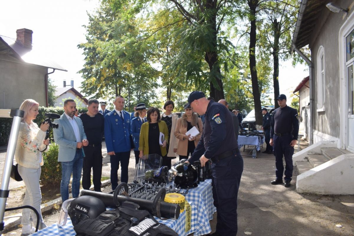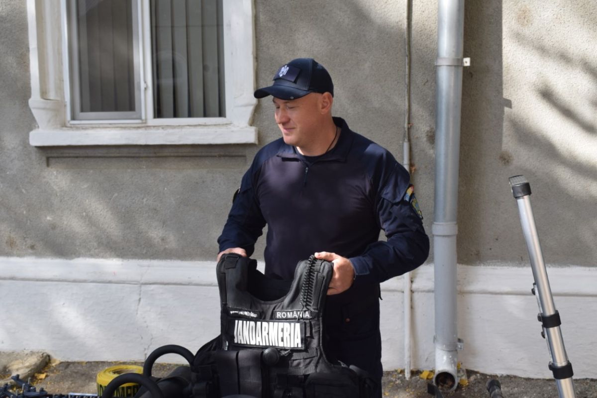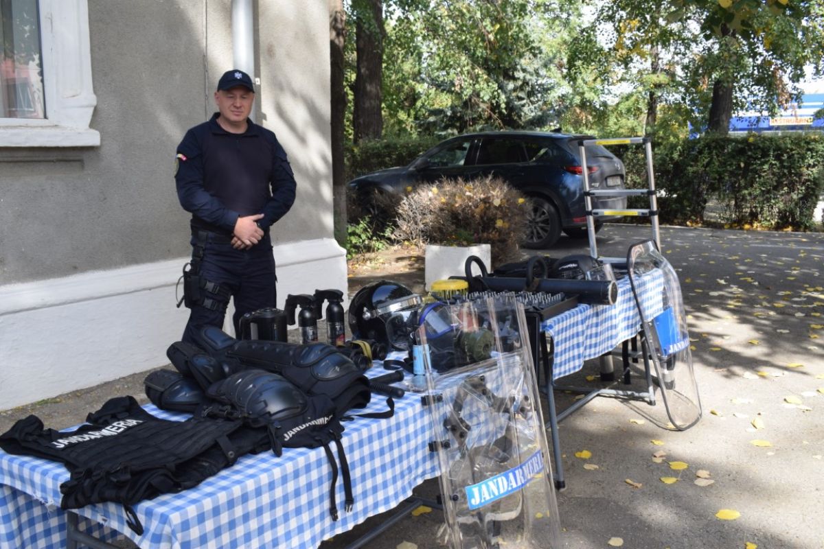 De asemenea a fost prezentat și echipamentul complet cu care sunt echipați jandarmii la momentul în care sunt nevoiți să plece în misiuni.