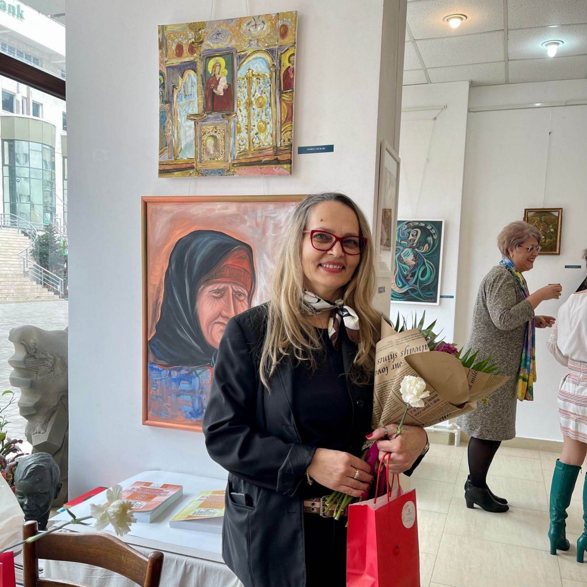 ”Pentru anul 2023, îmi doresc să retrăiesc sentimentele ce le-am avut la vernisajul expoziției de arte vizuale ”Arta…la feminin”, ediția a IV a, la Galeriile de Artă Botoșani, din data de 11 martie. Am avut onoarea să particip cu lucrarea ”Măicuța” alături de nume de valoare, la fel ca și lucrările acestor doamne, pictori în fața cărora mă înclin. Ce-mi mai doresc? Să nu mai existe atâta invidie, răutate între cei ce creează (mai bine sau mai puțin bine). Important este că există acțiune în frumos, iar frumosul/arta nu mai lasă loc de urât, de rău! Avem loc toți pe Pământ”.