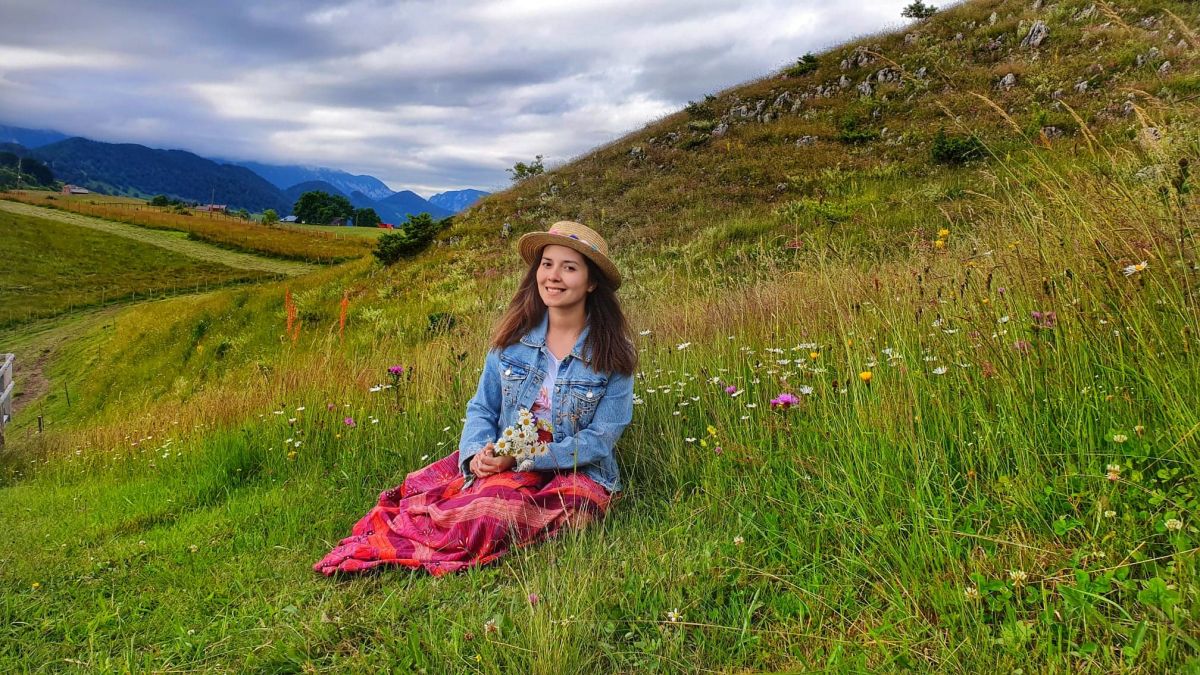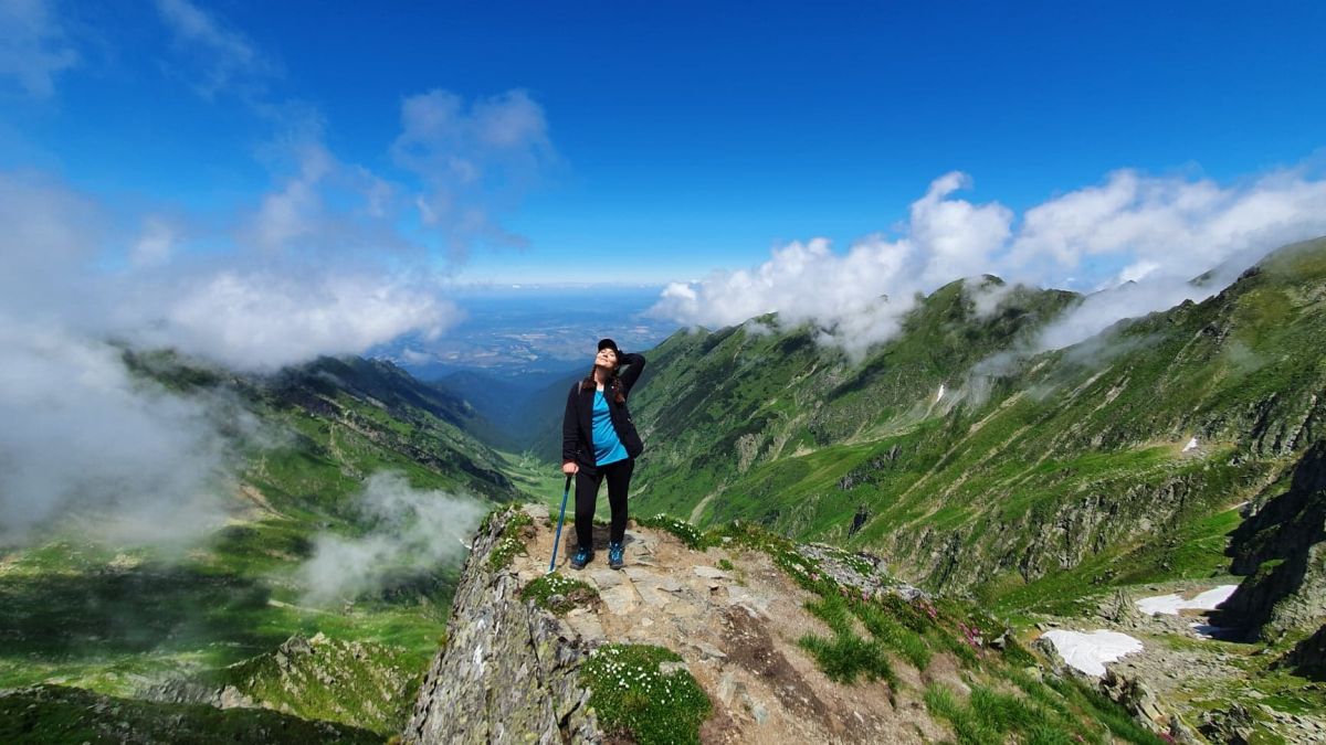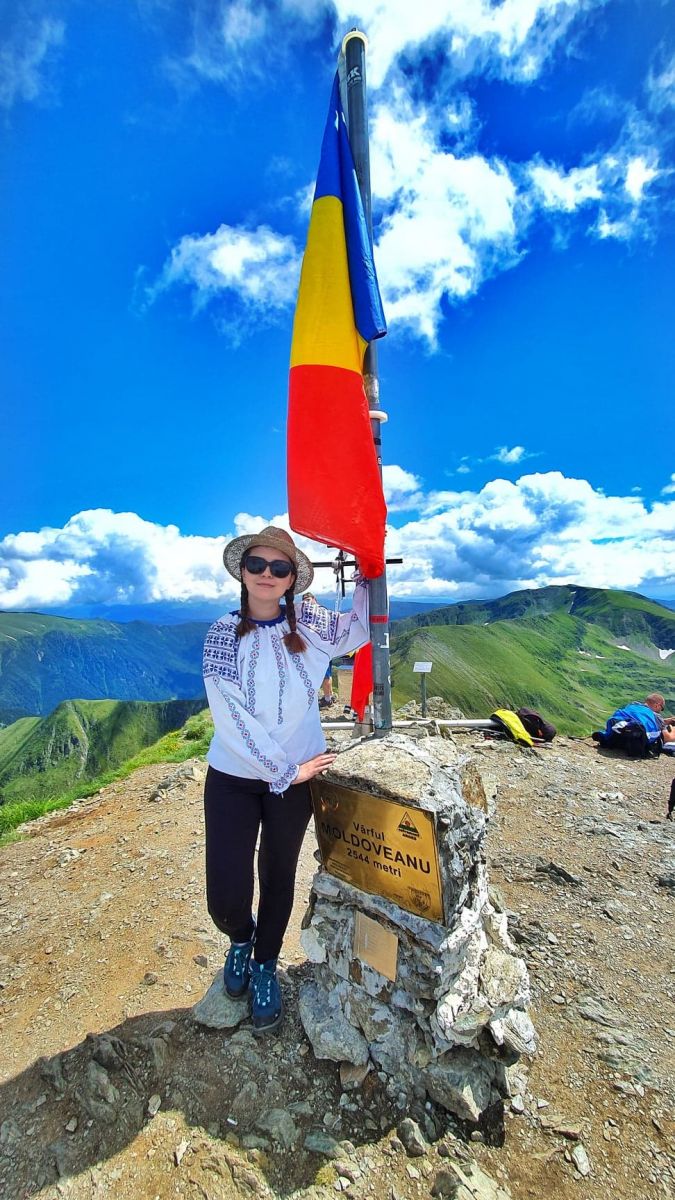 Artista din Botoșani a urcat recent pe cel mai înalt vârf montan din România, la 2.544 metri altitudine: „Am urcat pe Vârful Moldoveanu cu ia cusută de bunica Anica”, ne-a transmis entuziasmată.