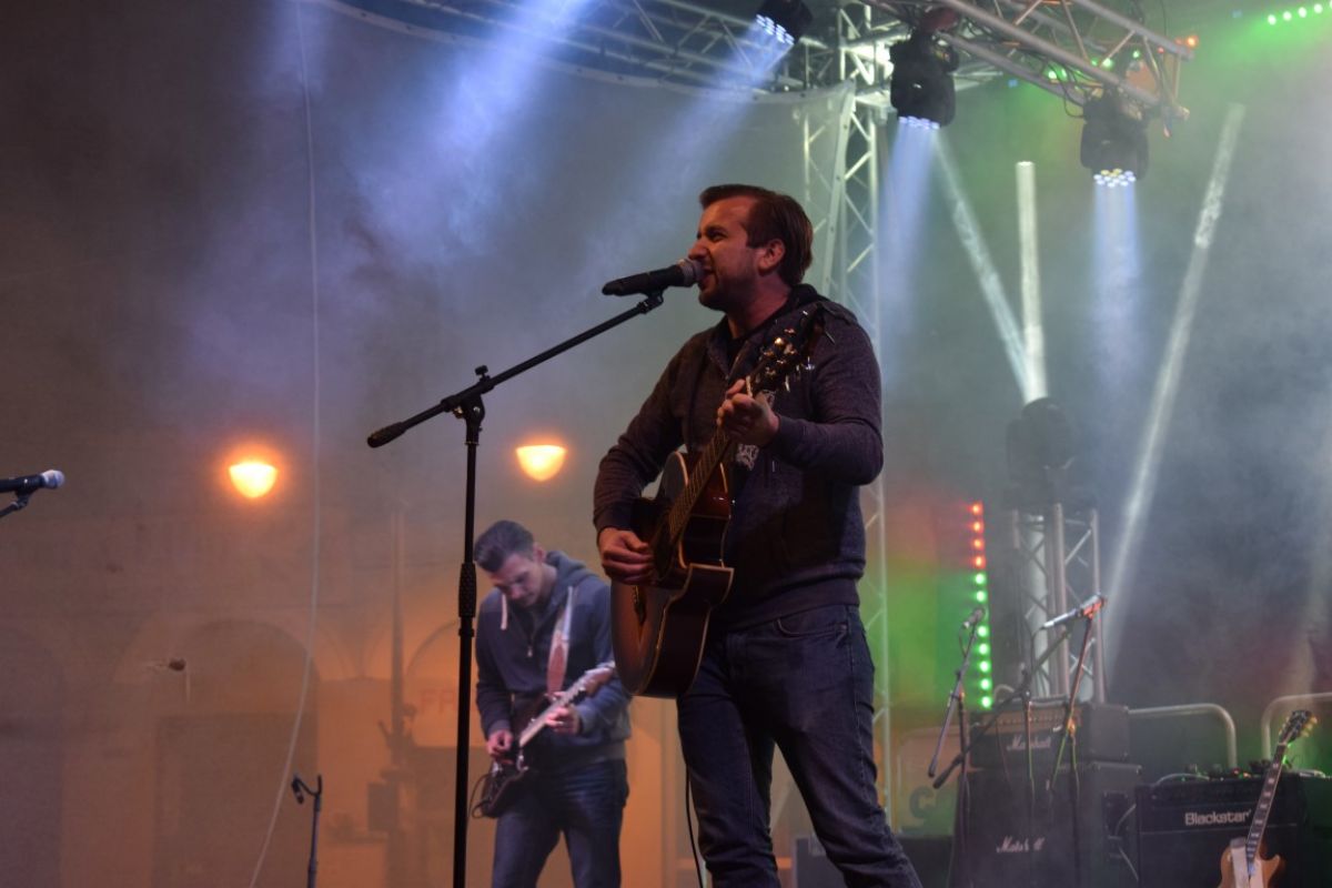 Până și-au acordat instrumentele unul dintre artiștii vocali, Bobi Dumitraș a întreținut publicul cu mai multe glume rostite cu puternic accent moldovenesc.