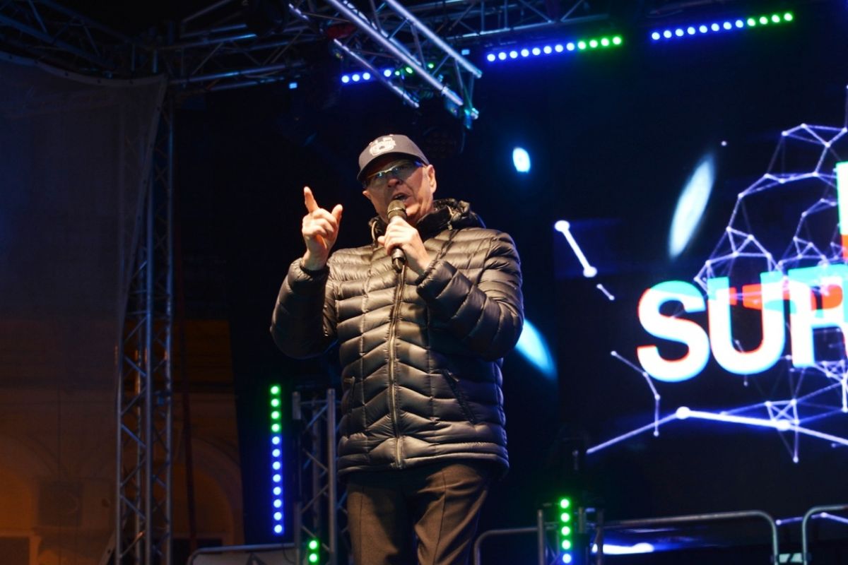 Primul care a intrat pe scenă a fost Ion Suruceanu. Îndrăgitul cântăreţ nu prea a fost recunoscut de cei prezenţi atunci când a ajuns în Piaţa 1 decembrie 1918. Şi aceasta probabil ca urmare a costumaţiei: geacă de fâş, pantaloni „la dungă” şi pantofi de lac, în timp ce pe cap, în ciuda simpatiei pe care o poartă Partidului Comuniştilor din Moldova, avea o şapte proprie mai degrabă formaţiilor de hip-hop, pe care de altfel scria „U State”.