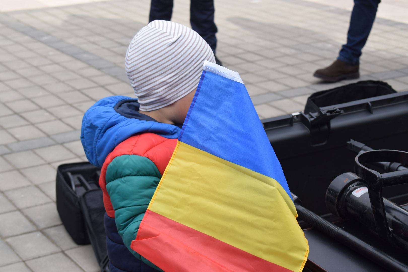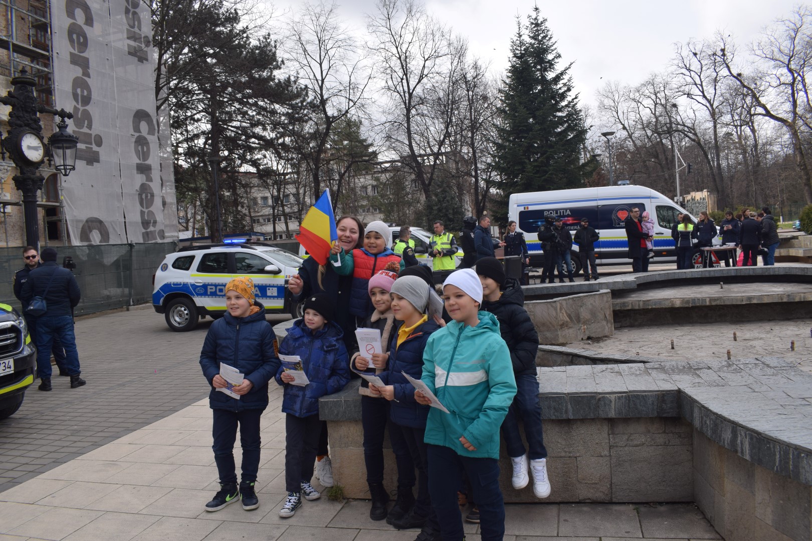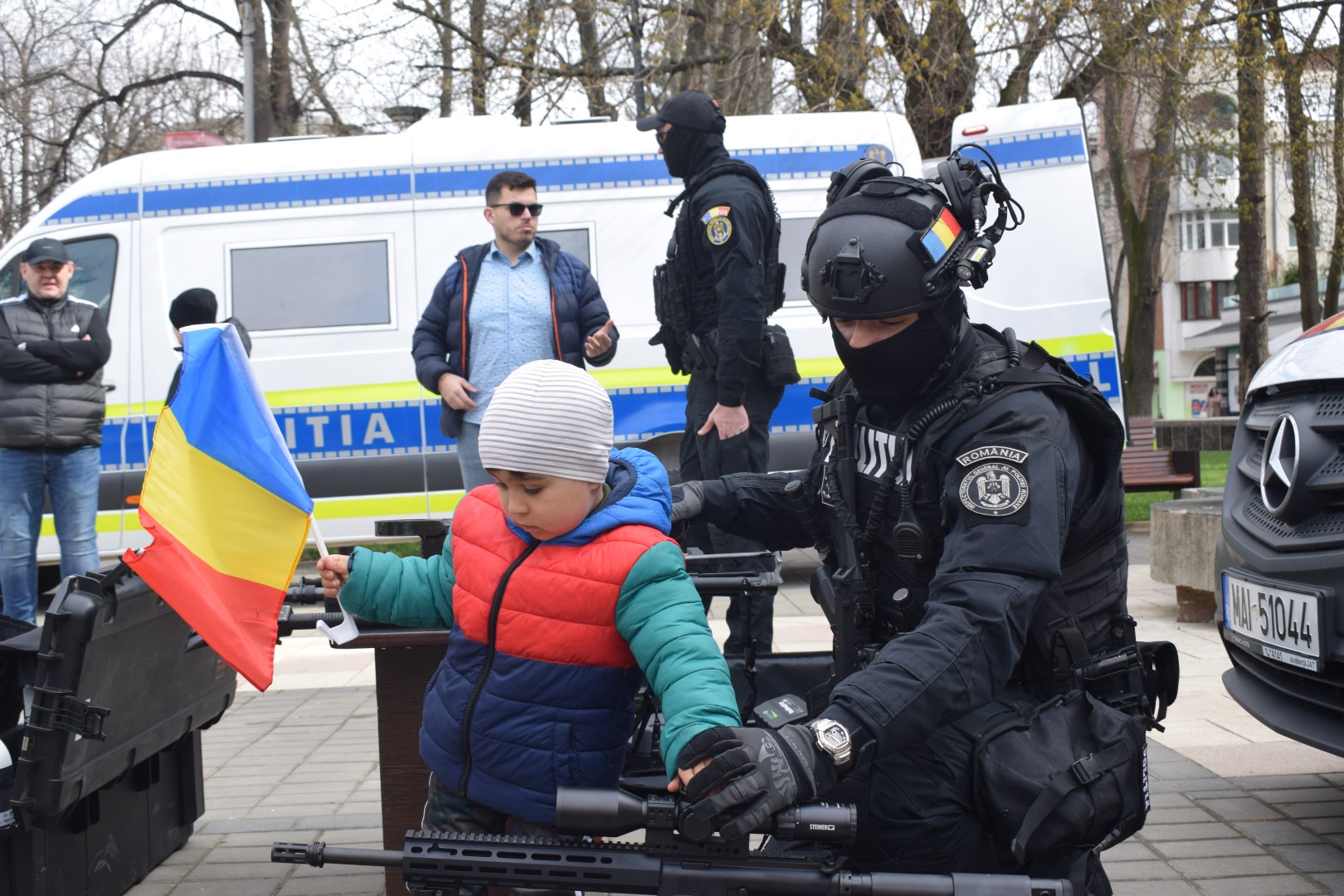 Aryan, băiețul găsit în pădure după 24 de ore de căutări, a fost alături de polițiști pe Pietonalul Unirii de ziua lor.