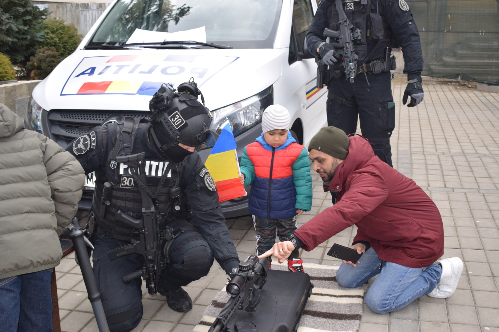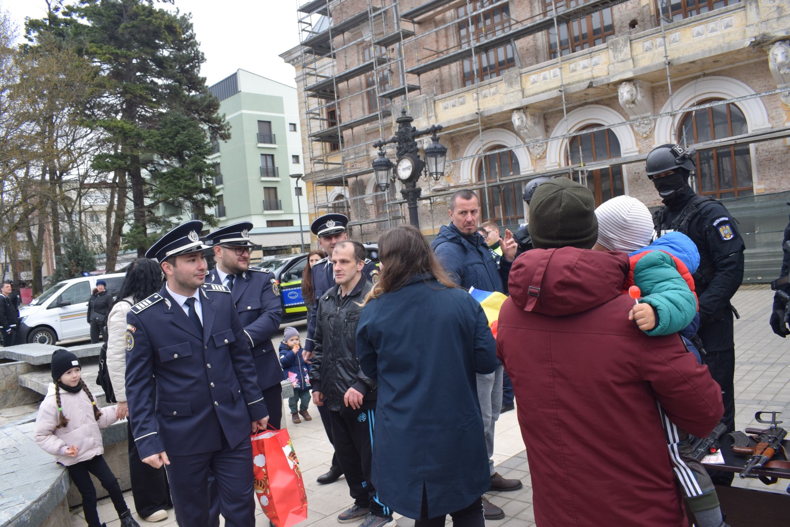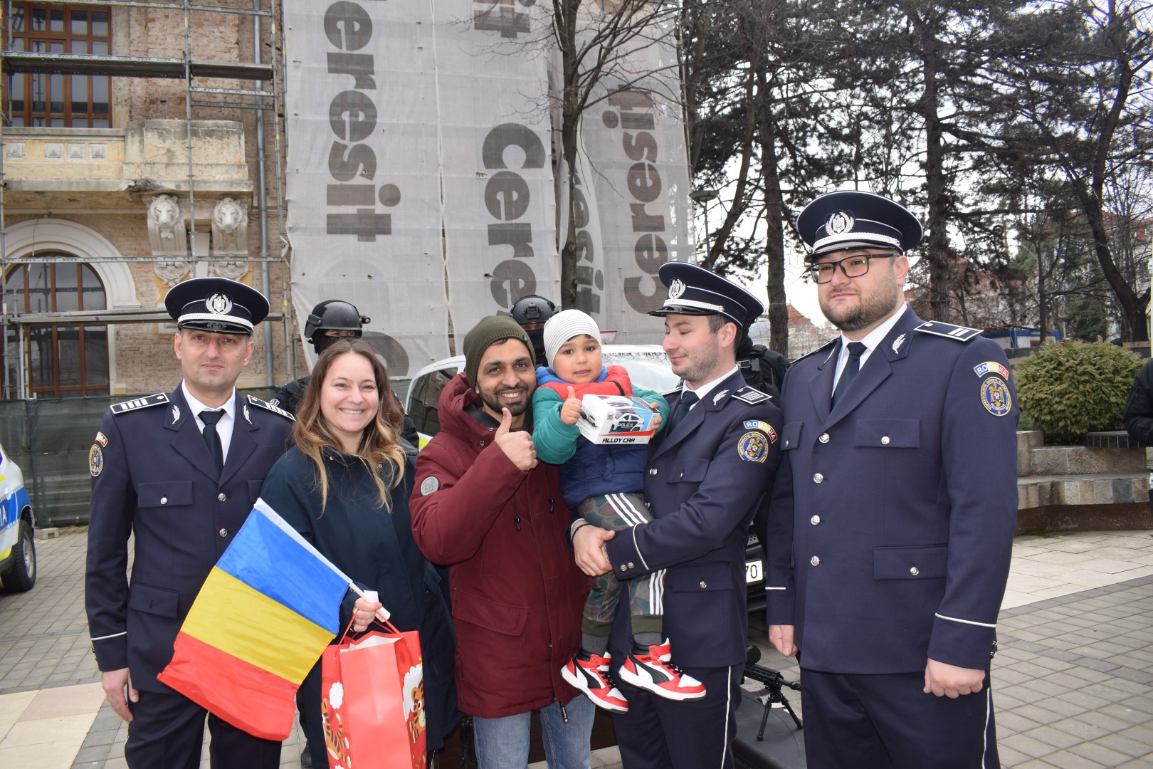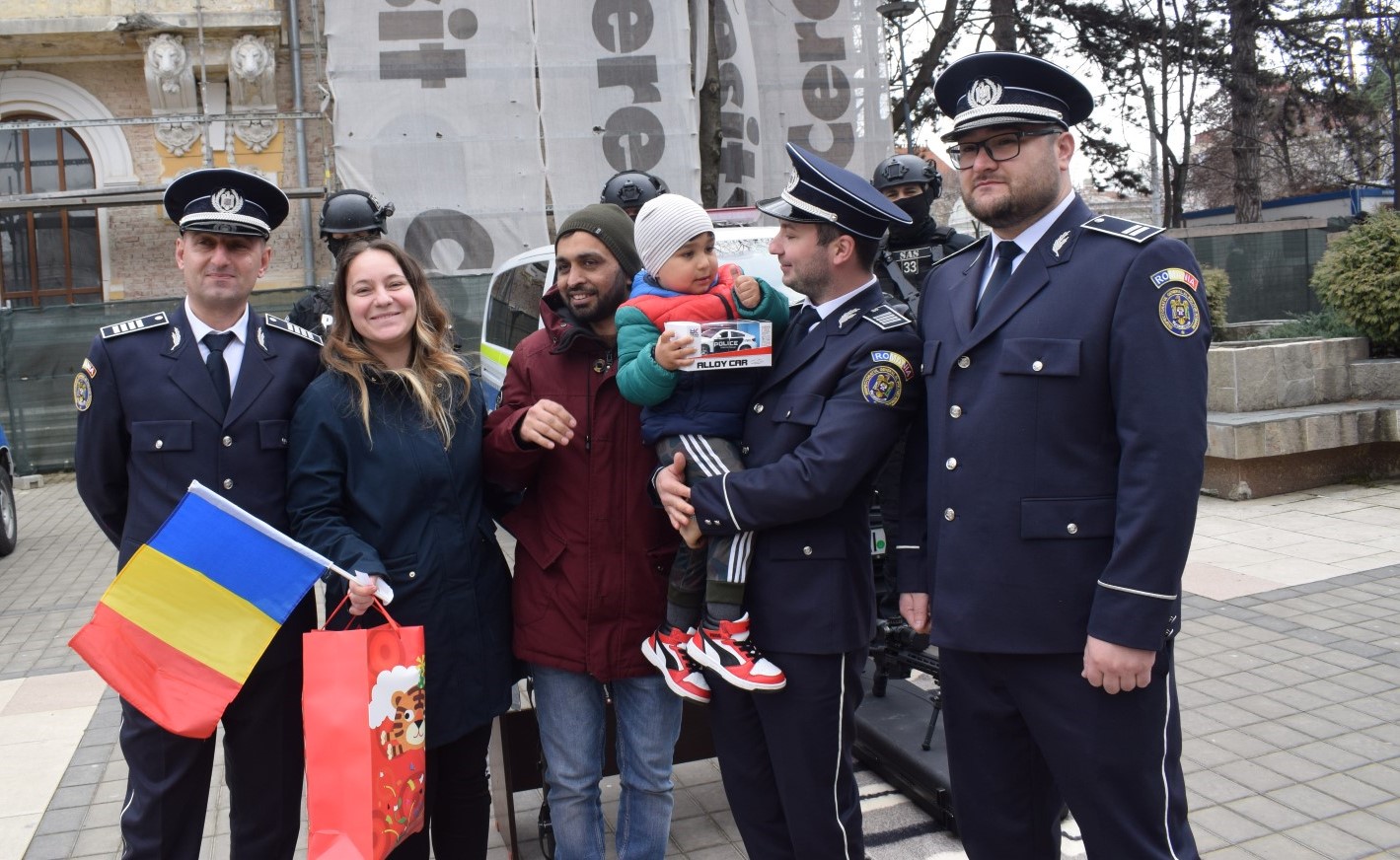 Iar asta deoarece agent Andreş Emanuel George, agent principal Șerban Laurențiu și agent Ionuţ Chiraş din cadrul Inspectoratului de Poliție Județean (IPJ) au venit pe Pietonalul Unirii și i-au oferit daruri copilului.