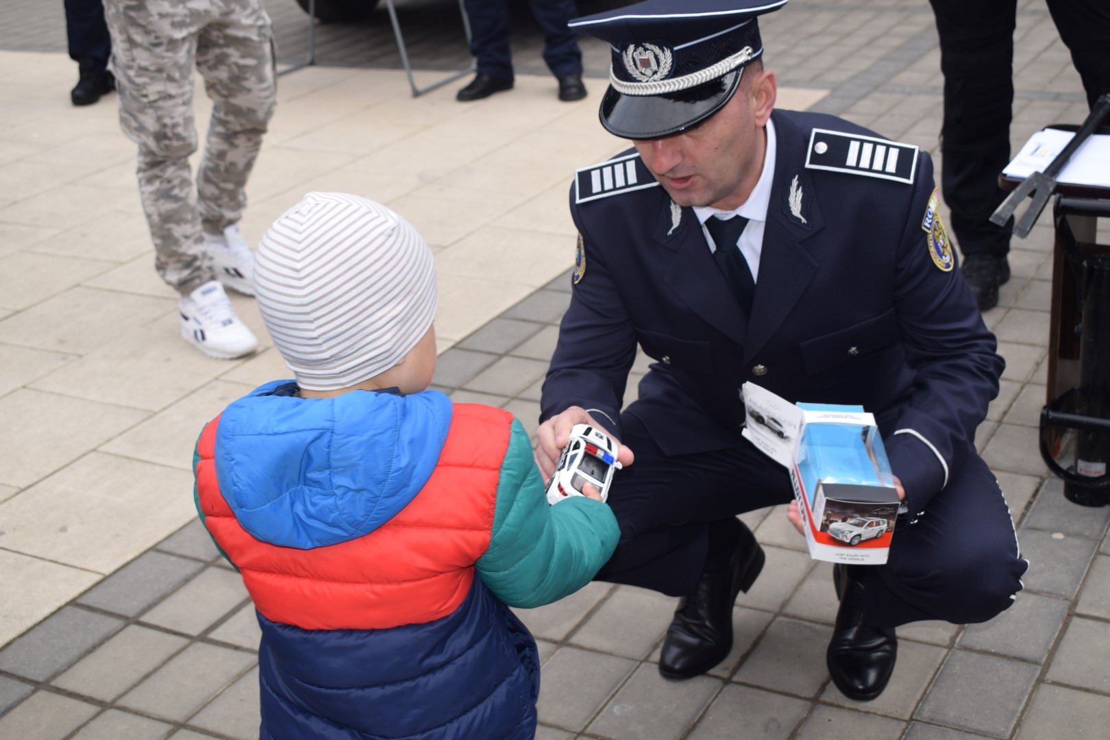 Printre altele, băiețelul a primit o mașinuță de Poliție.