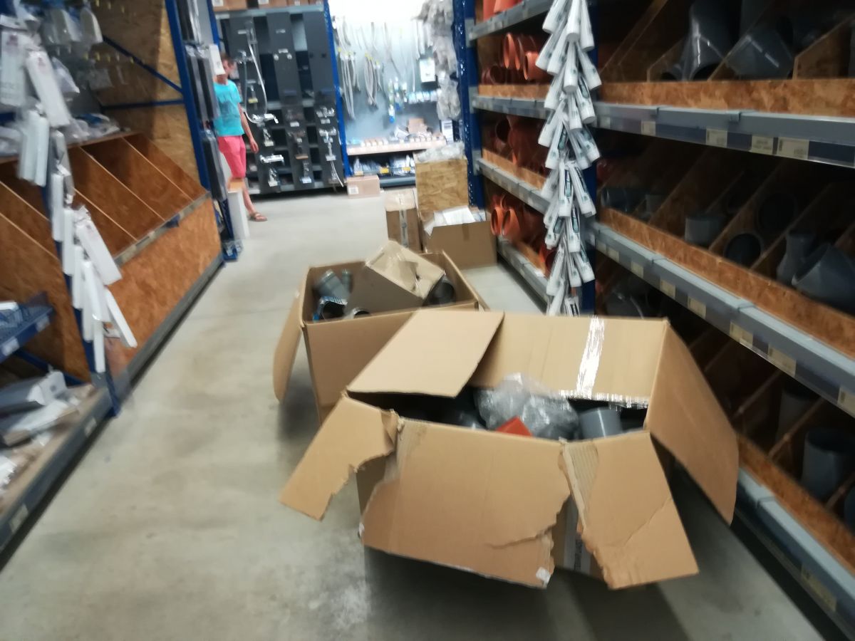 O puzderie de lăzi şi tot felul de alte produse erau aruncate pe jos, unde se întâlneau cu cărucioare abandonate cu tot cu marfă.
