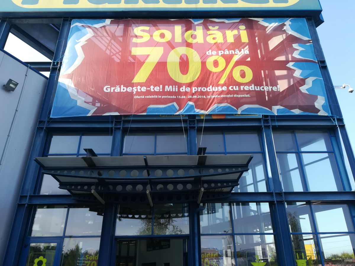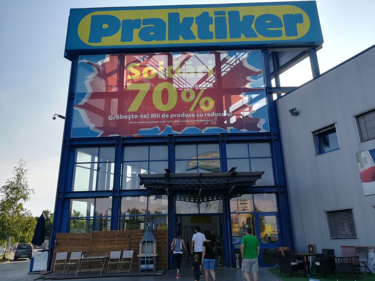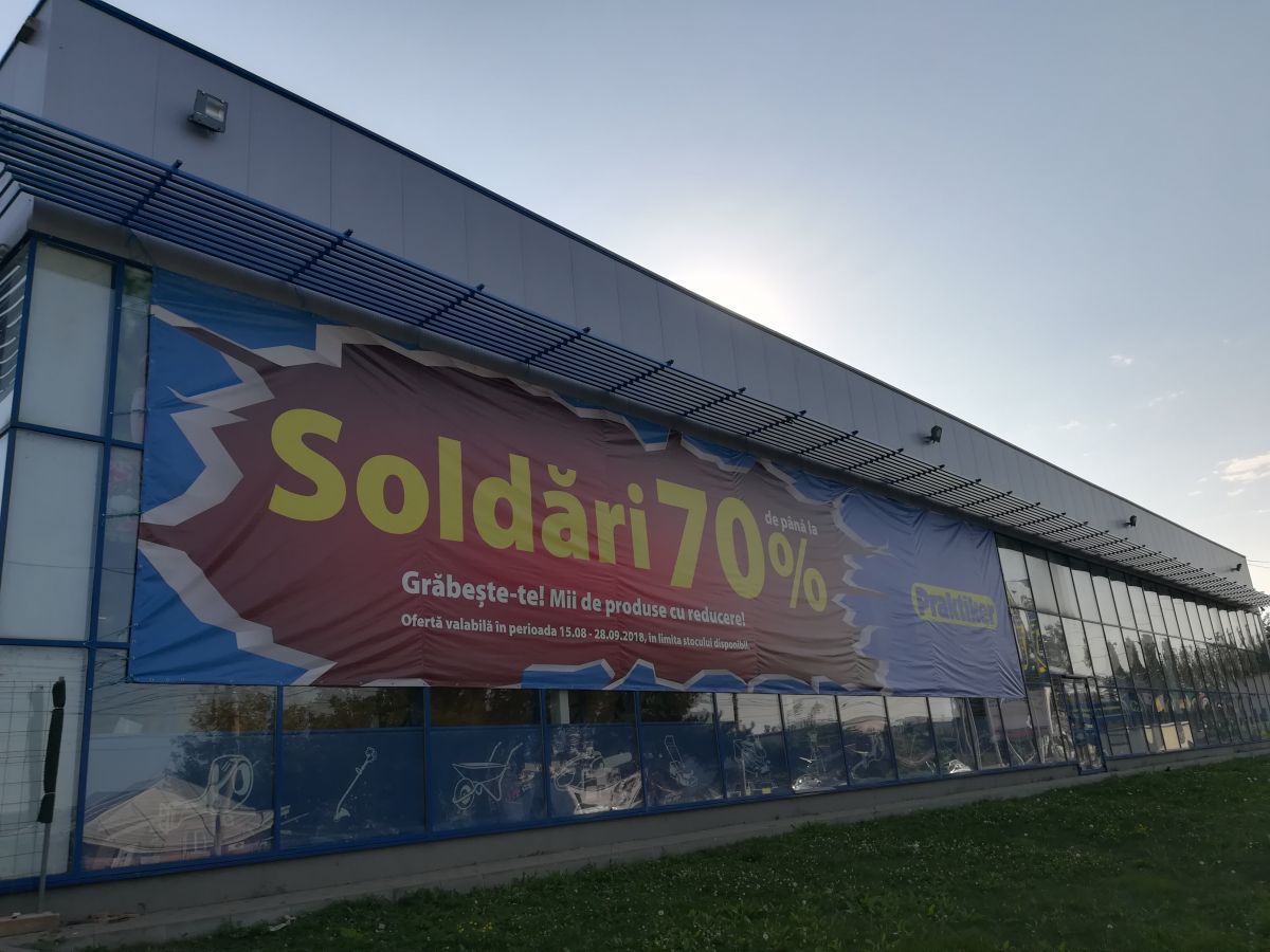 „Soldări de până la 70%. Grăbeşte-te! Mii de produse cu reducere!” Acesta este anunţul dispus de Praktiker pe mai multe mesh-uri de dimensiuni generoase care pare să îi fi scos din minţi pe sute şi sute de botoşăneni.