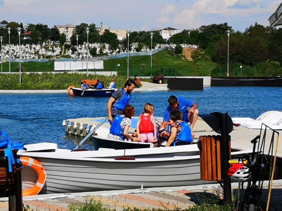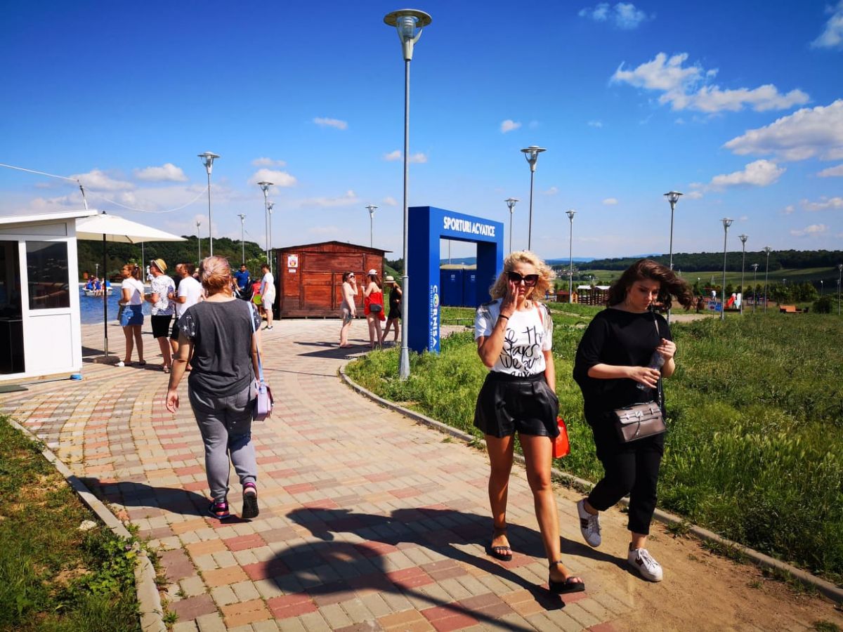 Dar aglomerație nu a fost doar la piscina exterioară, ci și la heleșteu, acolo unde mai mulți amatori se dădeau cu barca.
