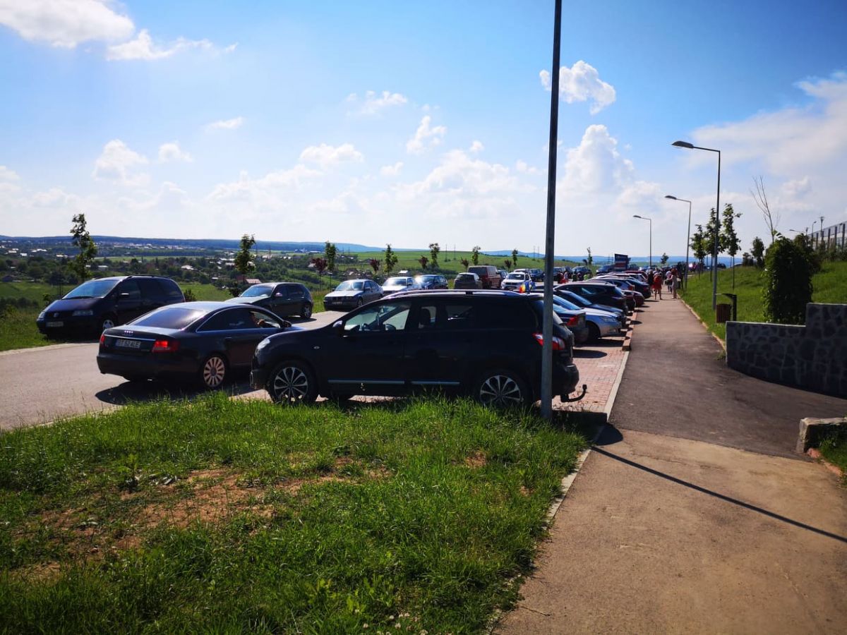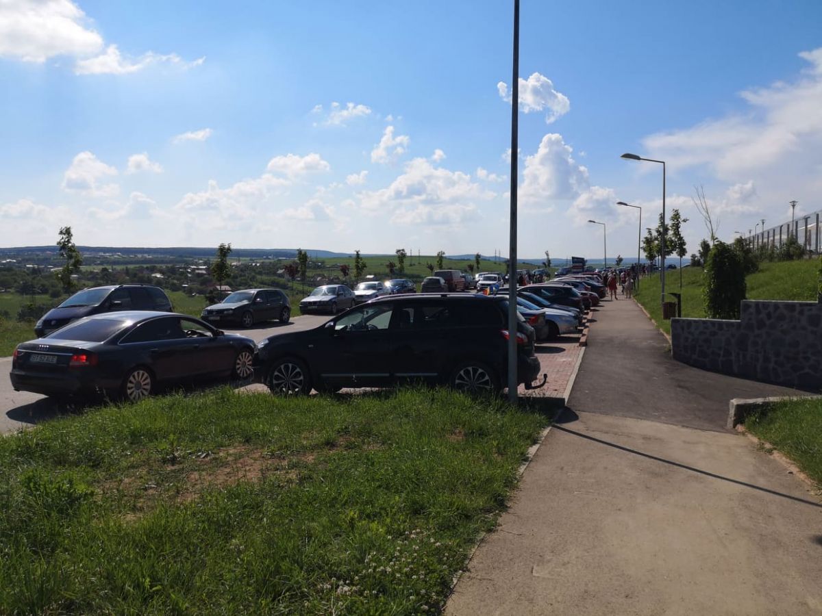 Pe la ora 15:30 parcarea de lângă piscină era arhiplină.