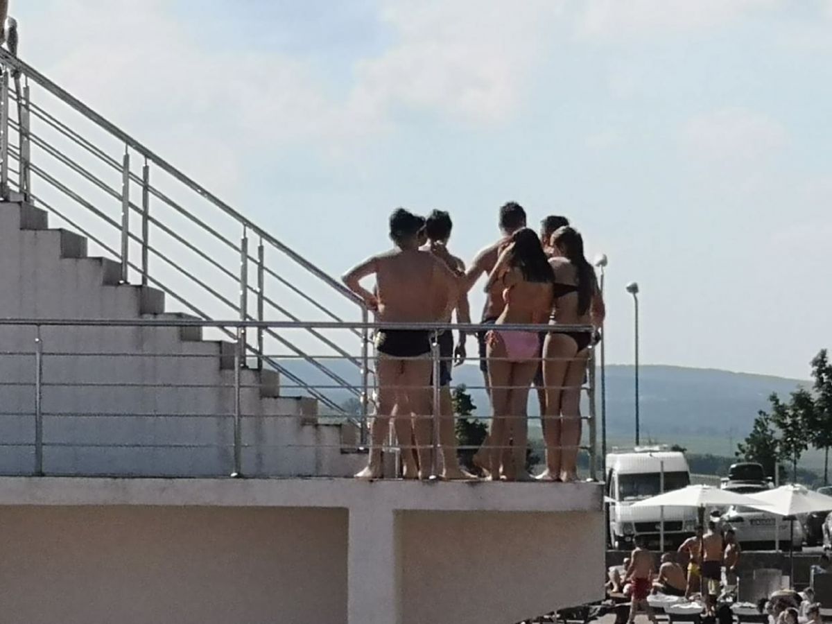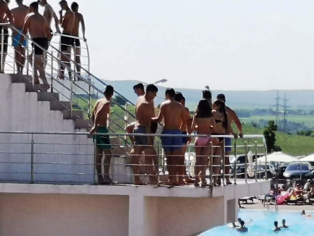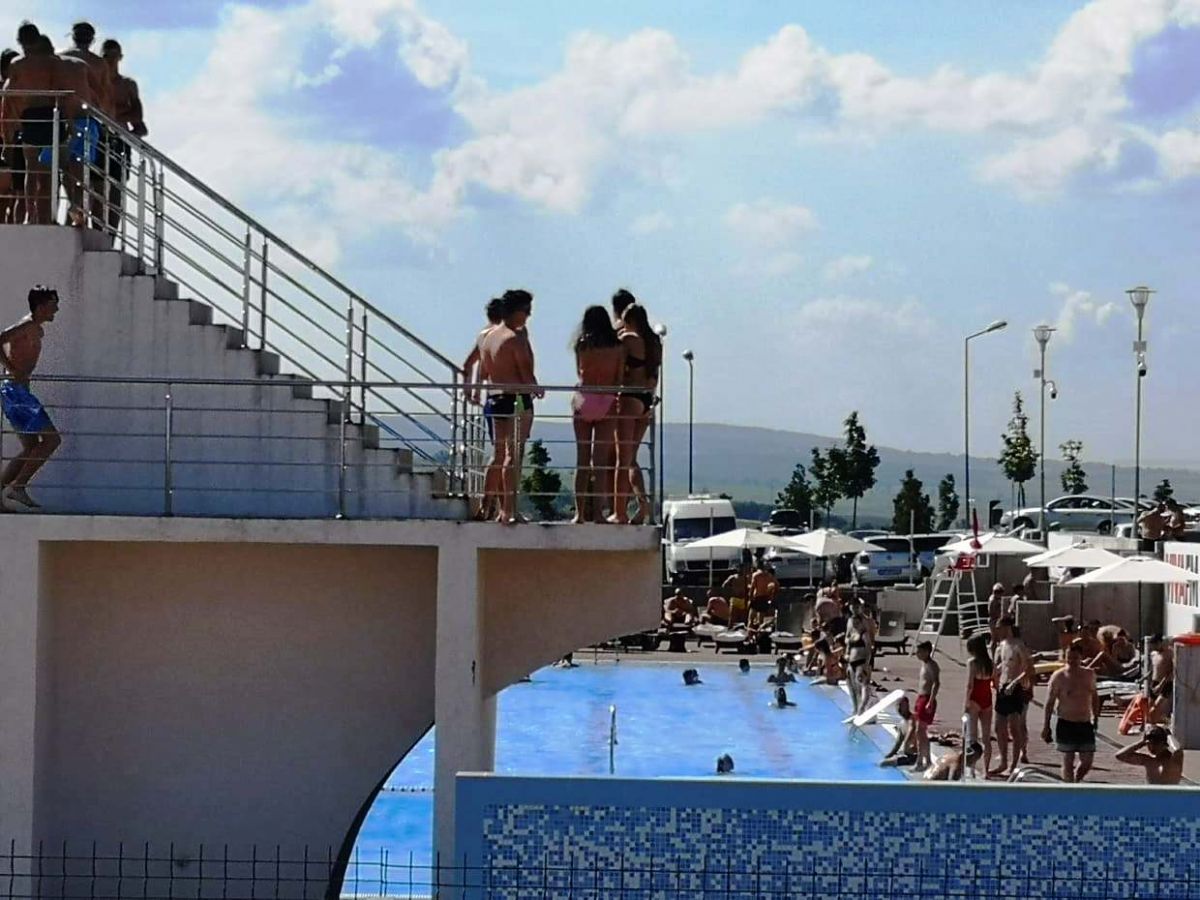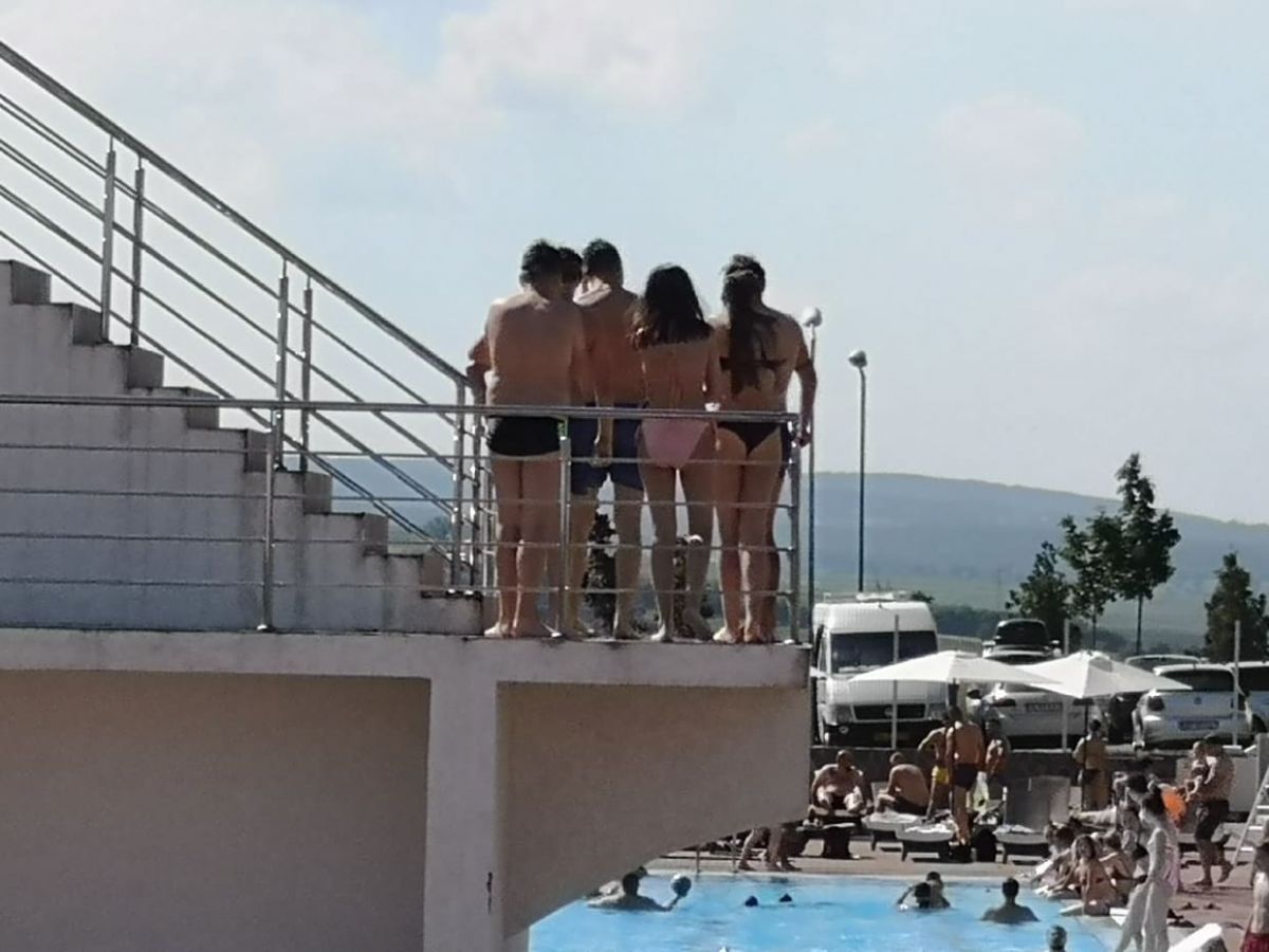 Mai toate șezlongurile erau ocupate, iar la trambuline se stătea la coadă pentru săritul în apă.