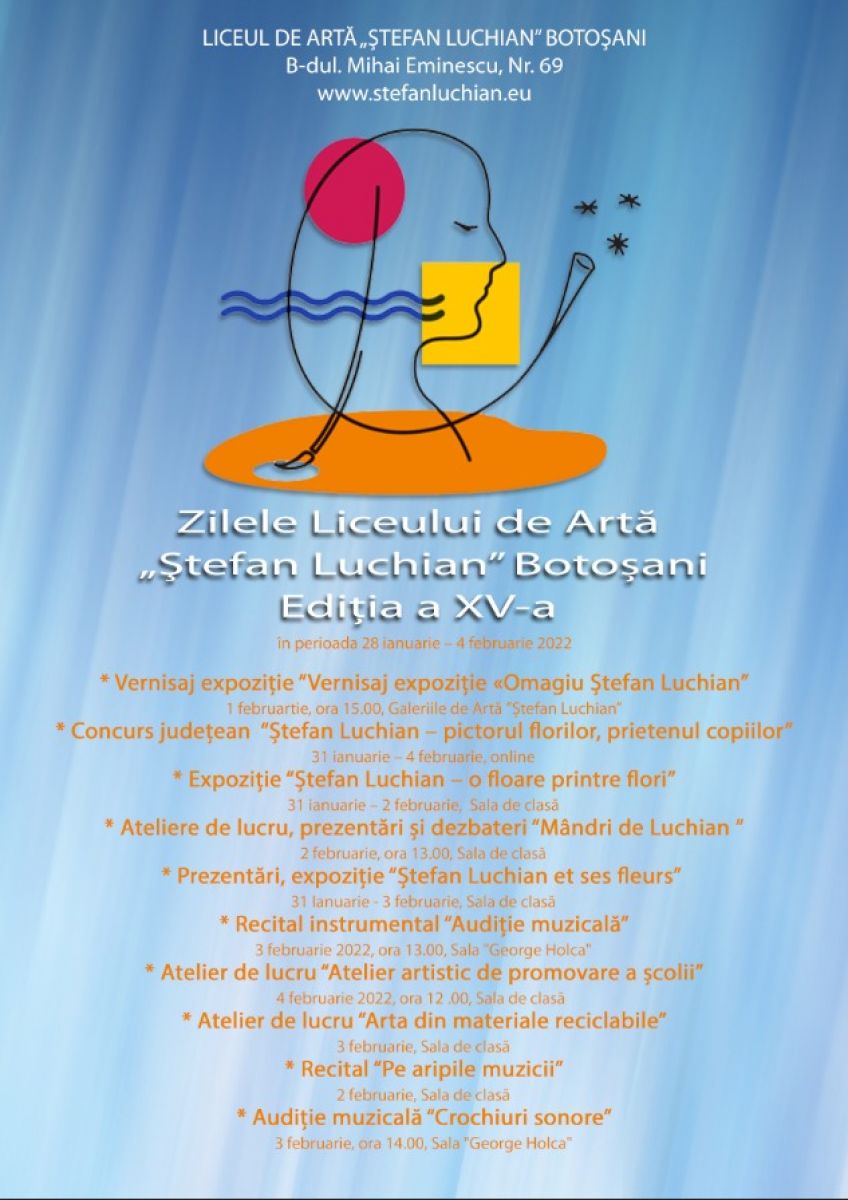 În perioada 31 ianuarie – 4 februarie, Liceul de Artă „Ştefan Luchian” este în sărbătoare, celebrând şase decenii de existenţă a învăţământului vocaţional de artă din Botoşani.