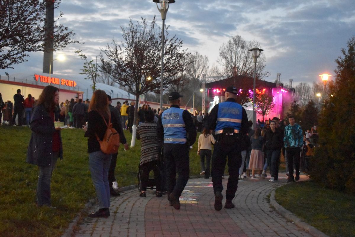 La intrarea în complex circulația era dirijată de un echipaj al Serviciului Rutier, la fel și în interiorul Parcului Cornișa.