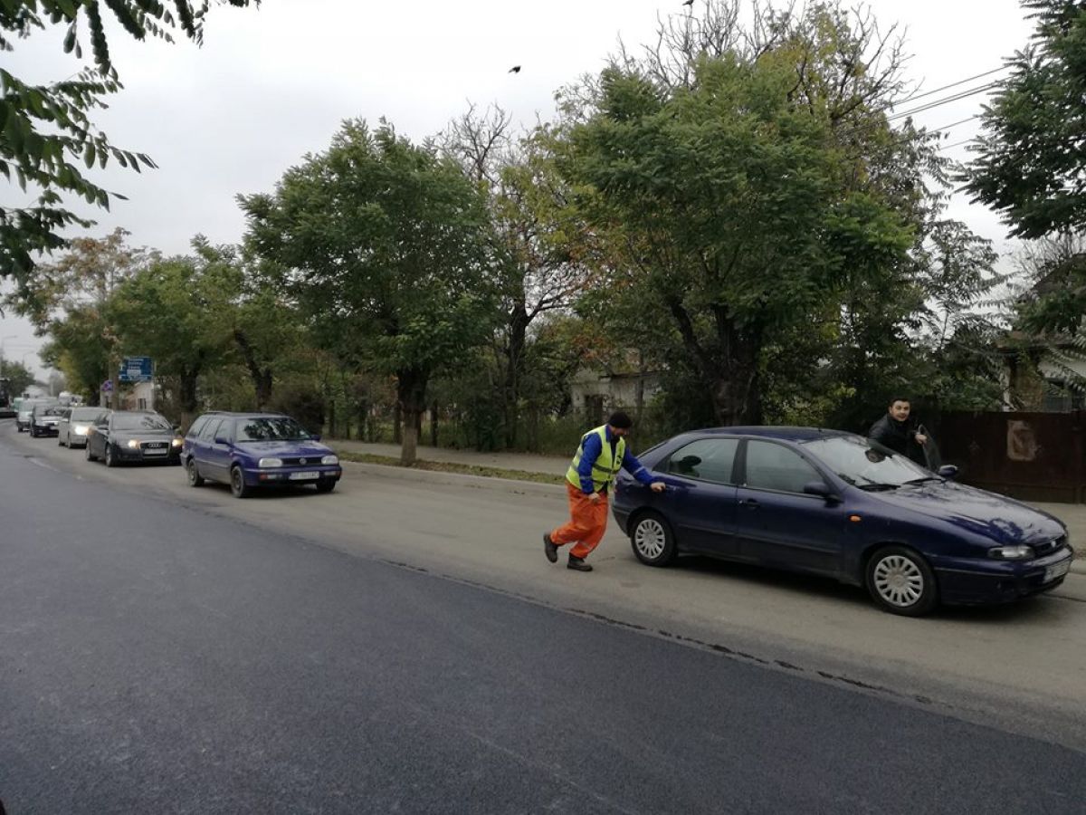Pentru ca muncitorii de la Tehnic Asist, firma care se ocupă de întreținerea străzilor din municipiu să își poată face treaba în liniște, viceprimarul Marian Murariu, prezent pe șantier, a solicitat intervenția polițiștilor.