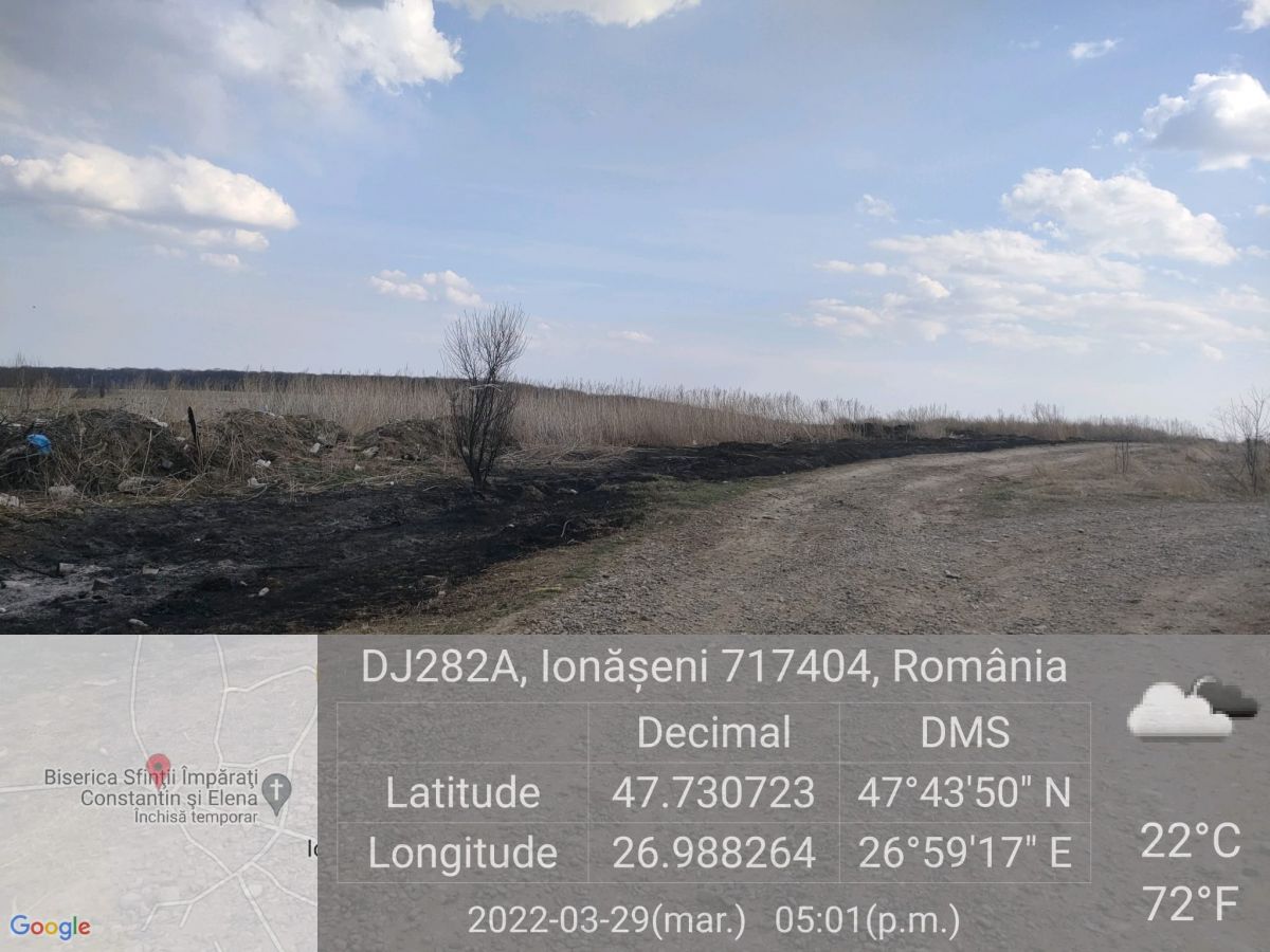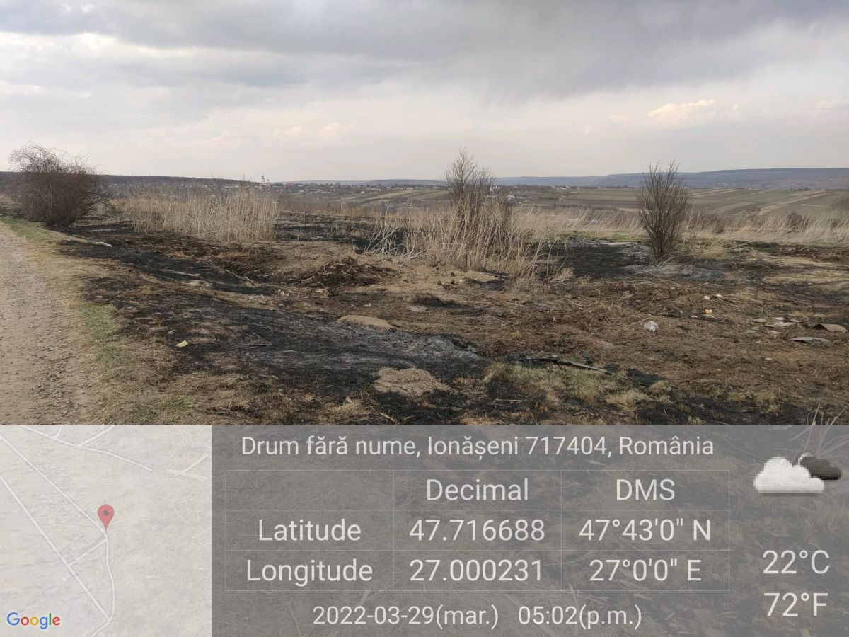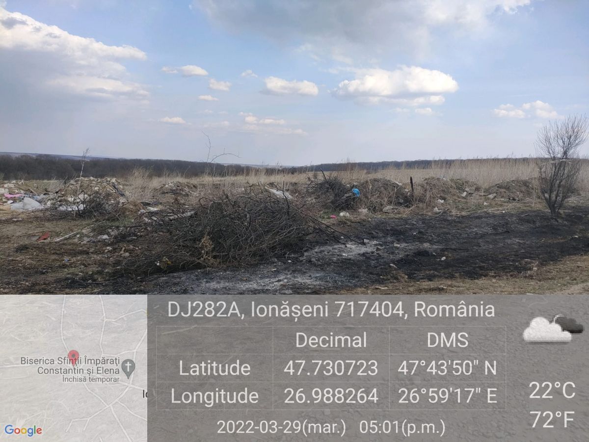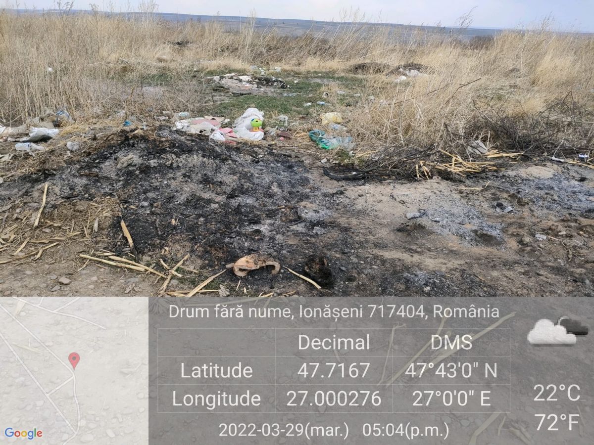 În data de 28 martie 2022 echipa de permanență din cadrul Garda de Mediu Botoșani a fost sesizată prin serviciul 112 despre un incendiu de vegetație și incendieri de deșeuri menajere în amestec cu resturi vegetale. Pentru amplasamentul sesizat, verificat de comisarii de mediu se stabilise anterior măsuri de salubrizare, DAR NU PRIN INCENDIERE.