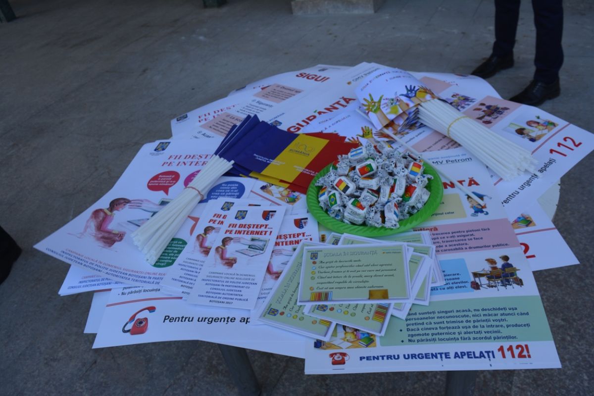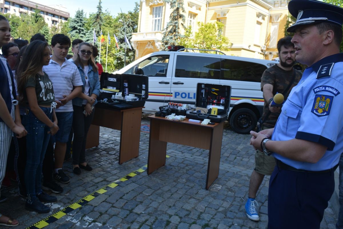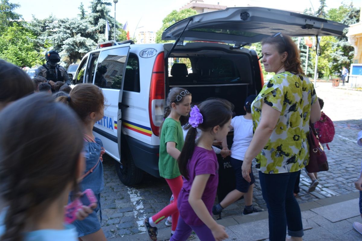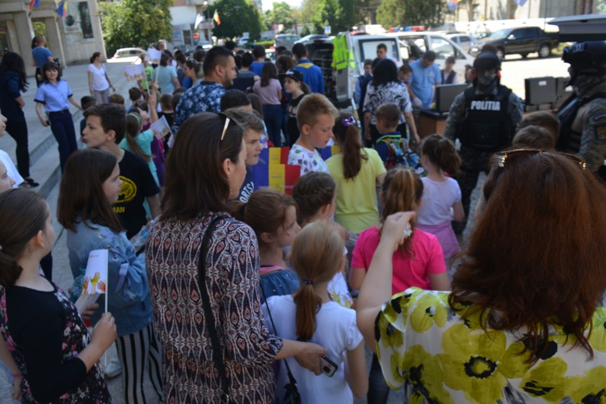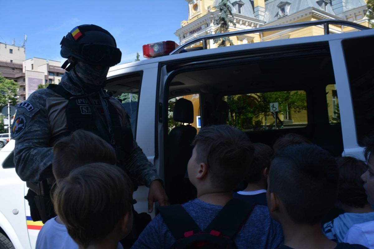 În cadrul unei acţiuni organizată de Prefectură şi IPJ Botoşani, în jur de 200 de copii din ciclurile primar şi gimnazial de la şcolile 6, 7, 8, 10, 11, 12, 14 şi 17 au venit însoţiţi de cadrele didactice şi au făcut cunoştinţă cu tehnica folosită de oamenii legii.
