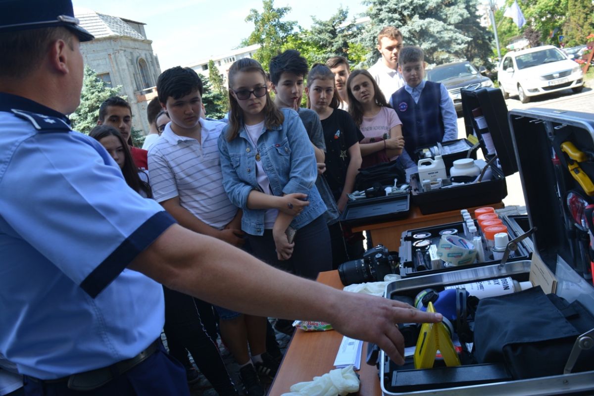 De la aparatul mobil de radar tip pistol şi până la trusele criminalistice, şcolarii s-au minunat de cele văzute.