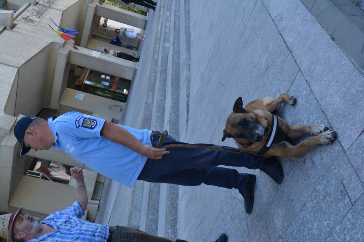 Aceştia au făcut cunoştinţă şi cu John, un câine poliţist care a acceptat docil mângâierile publicului.