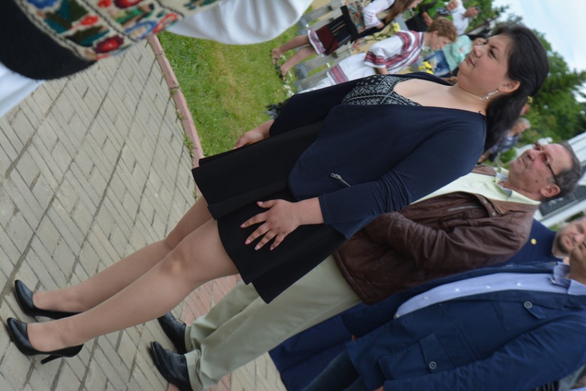 Chiar în fruntea lor s-a aflat o tânără îmbrăcată într-o fustă scurtă şi un decolteu generos, în contrast oarecum cu vestimentaţia sobră a altor femei din politică participante la acţiune.