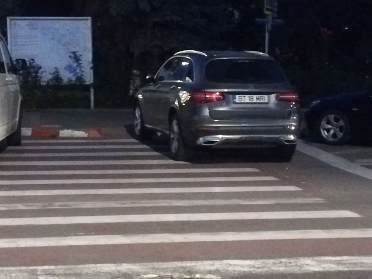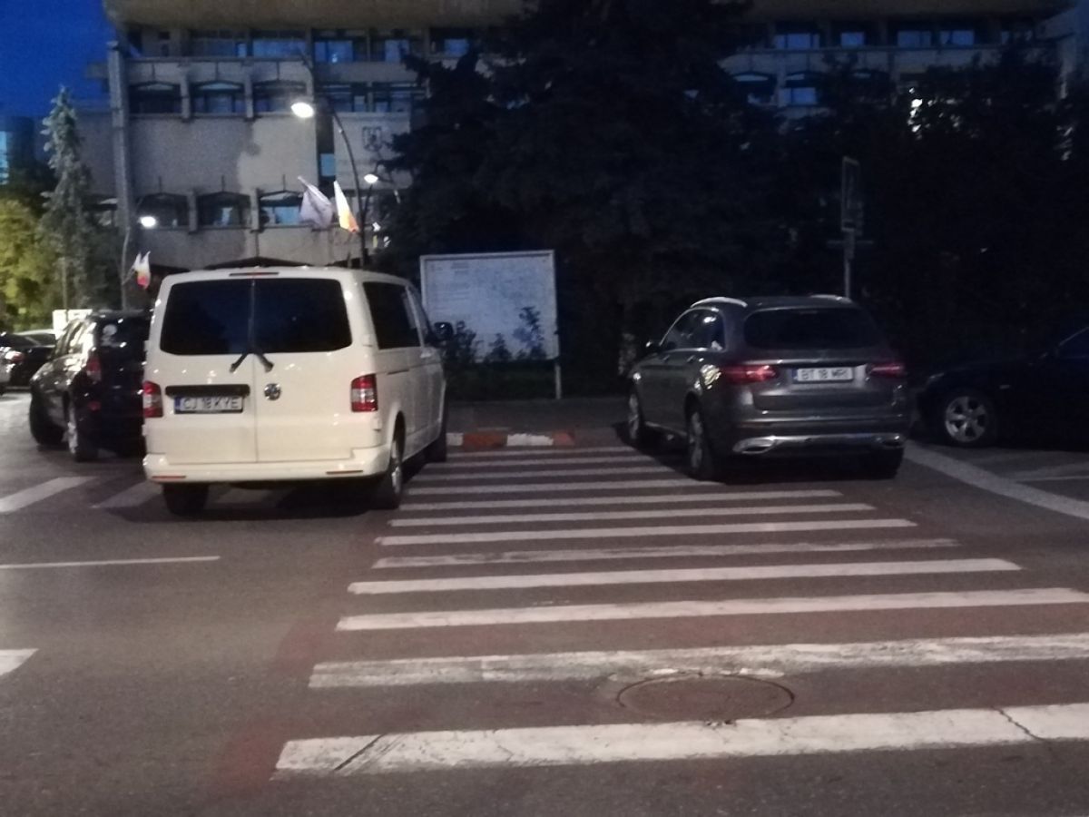 Lângă VW, care este înmatriculat în Cluj se afla şi o maşină de teren, parcată pe o singură trecere de pietoni.
