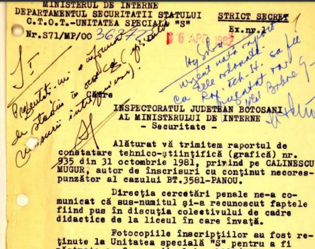 Era toamna anului 1981 când adolescentul din Botoşani punea pe jar regimul comunist, pictând nopţi la rând zidurile din oraş cu inscripţii care îndemnau cetăţenii să îşi caute libertatea. Un gest de un curaj nebun, care a fost aspru pedepsit de Securitate.