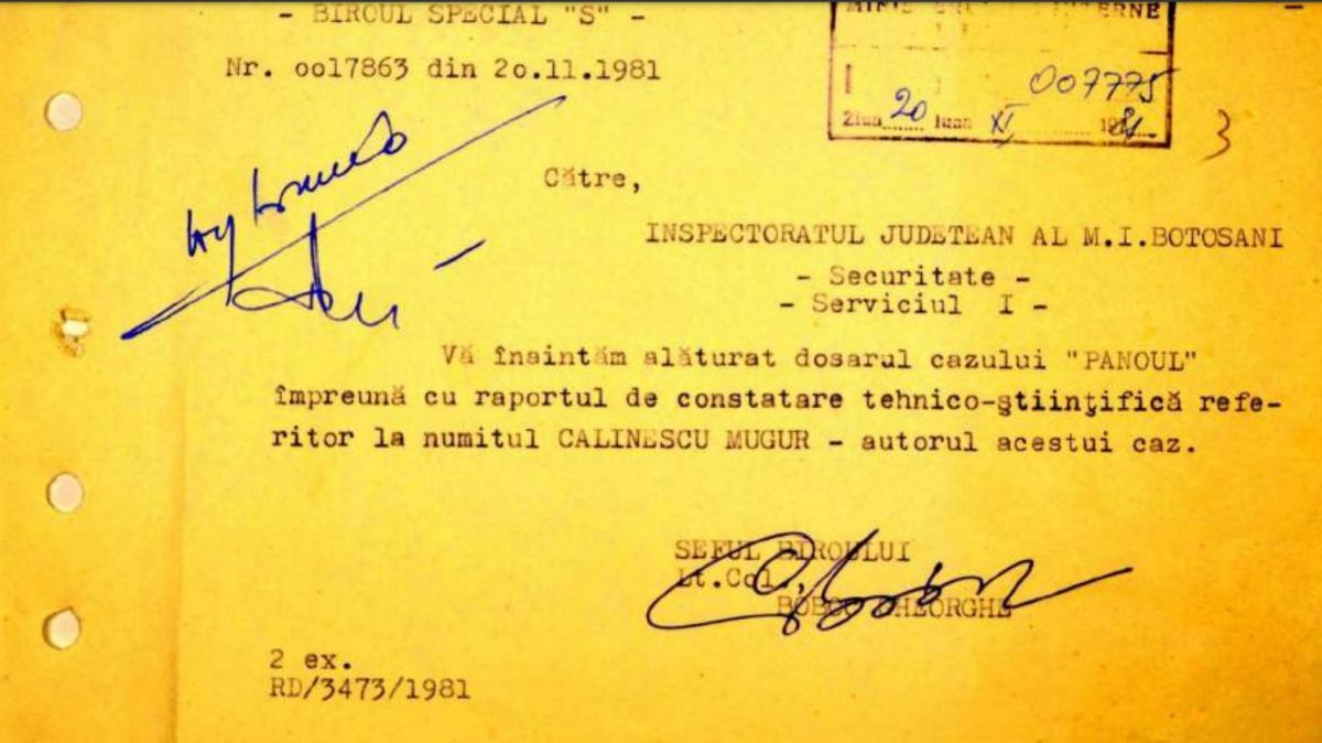 Timp de mai multe săptămâni, organele locale ale Ministerului de Interne, susţinute şi de Miliţia şi Securitatea din judeţul vecin (Suceava), au declanşat operaţiunea "Panoul", răscolind Botoşaniul în căutarea "teroristului" care "atentase" la valorile regimului comunist. După o lună de zile de la demararea acţiunii de prindere a făptaşului, Mugurel Călinescu este arestat în timp ce scria un mesaj pe un panou, de către o patrulă compusă dintr-un miliţian şi un securist.