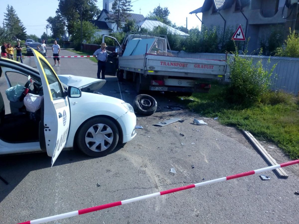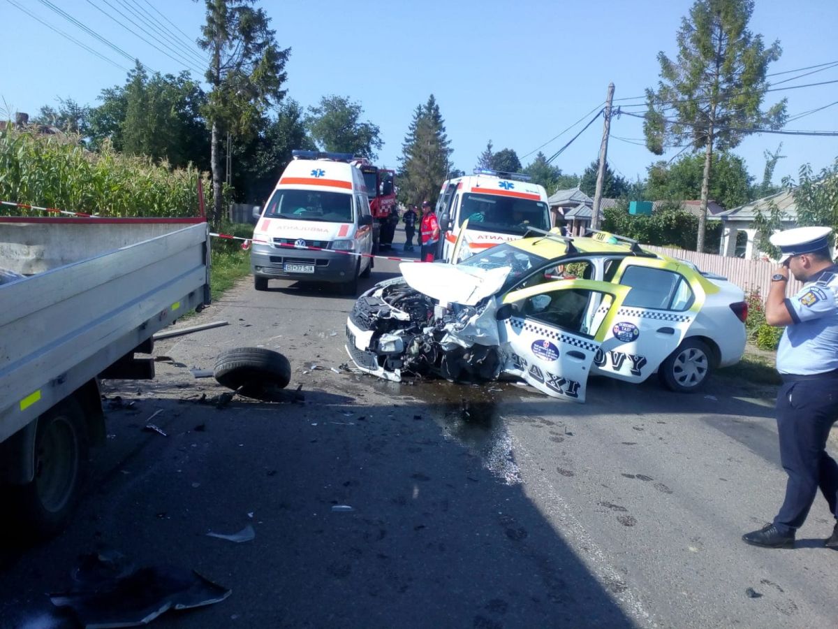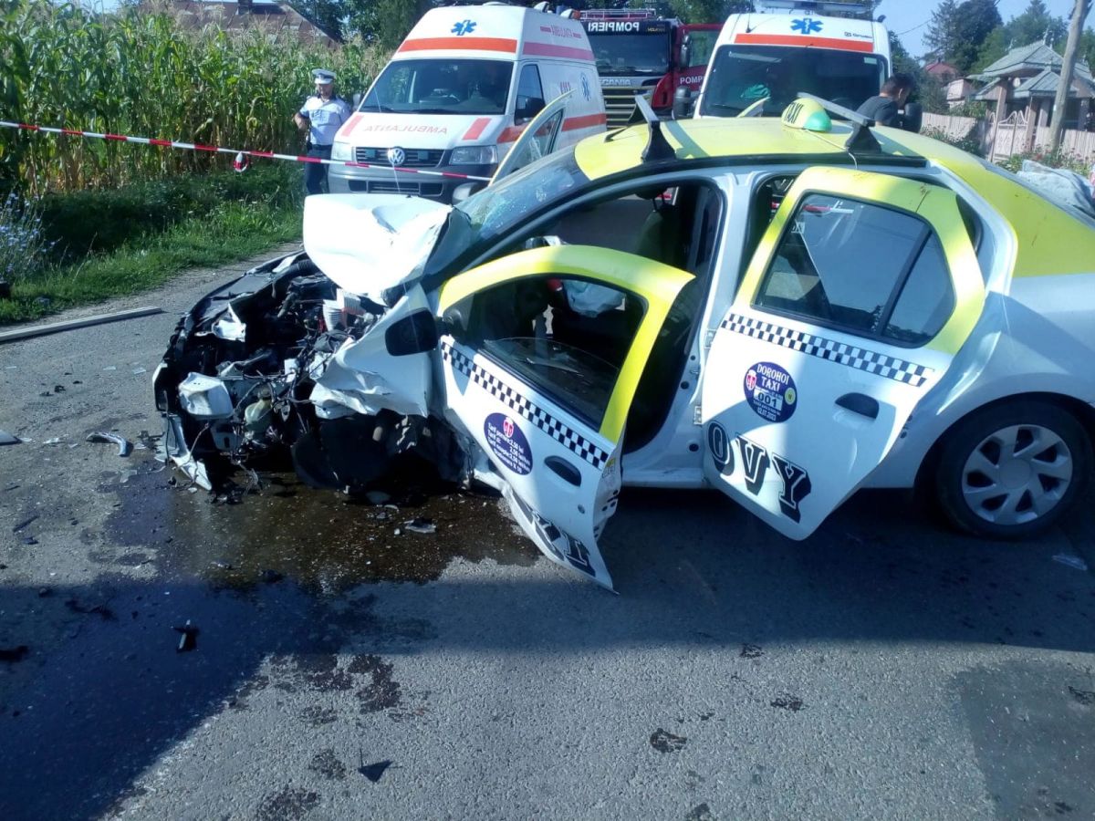 În urma impactului dintre cele două autovehicule, trei persoane au fost rănite, acestea fiind pasagere în taxi.