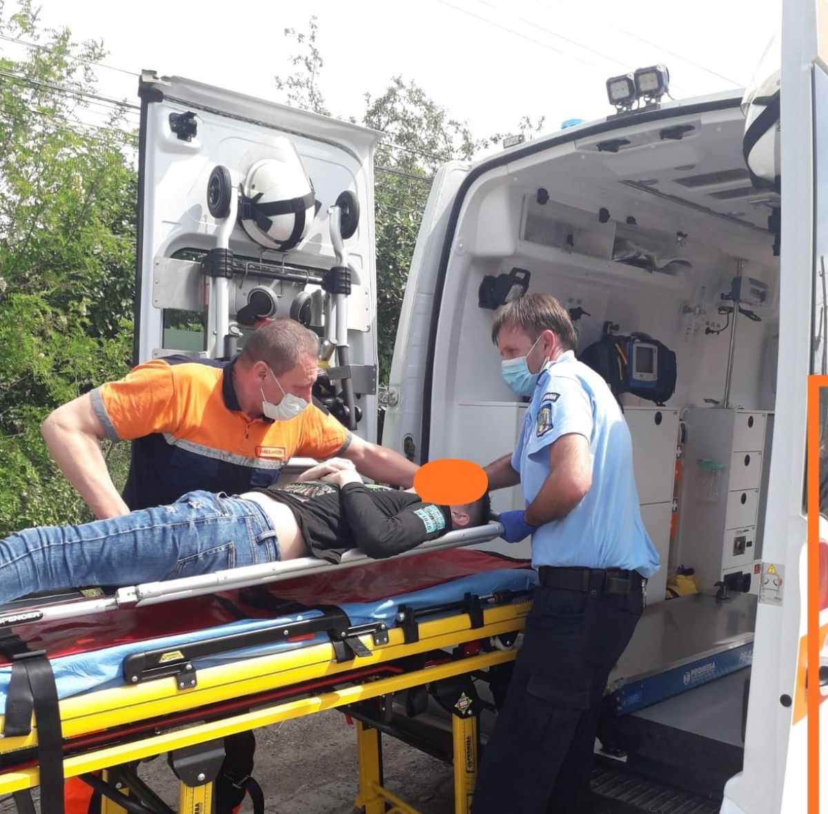 Băiatul a fost preluat de ambulanță și transportat la spital în vederea îngrijirilor medicale de specialitate.