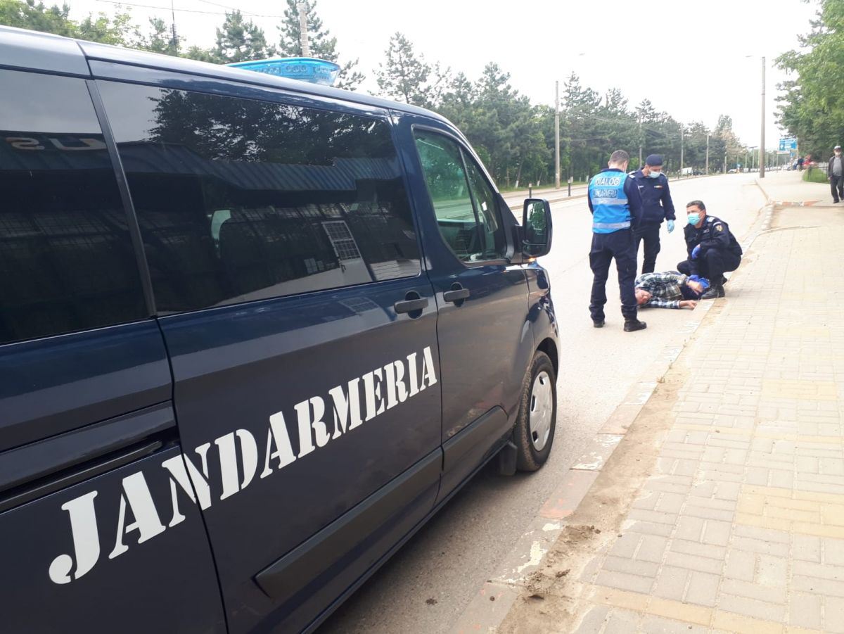 Un bărbat a fost găsit căzut în stradă de către un echipaj de jandarmi.