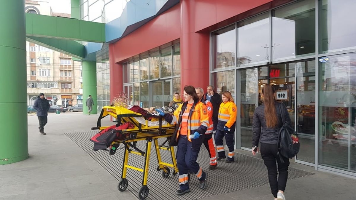 Un bărbat, care are în jur de 50 de ani, a fost preluat de o salvare a Serviciului Judeţean de Ambulanţă din incinta Uvertura Mall.