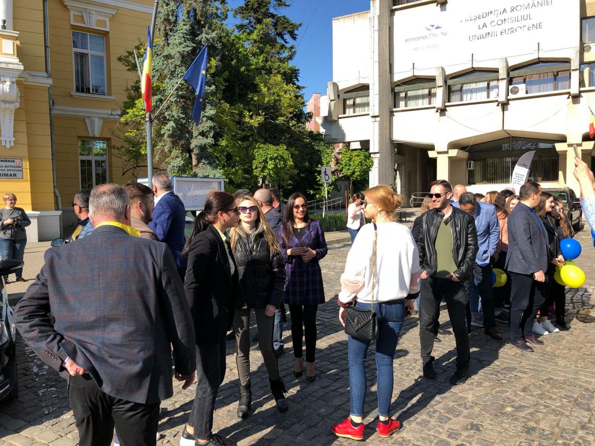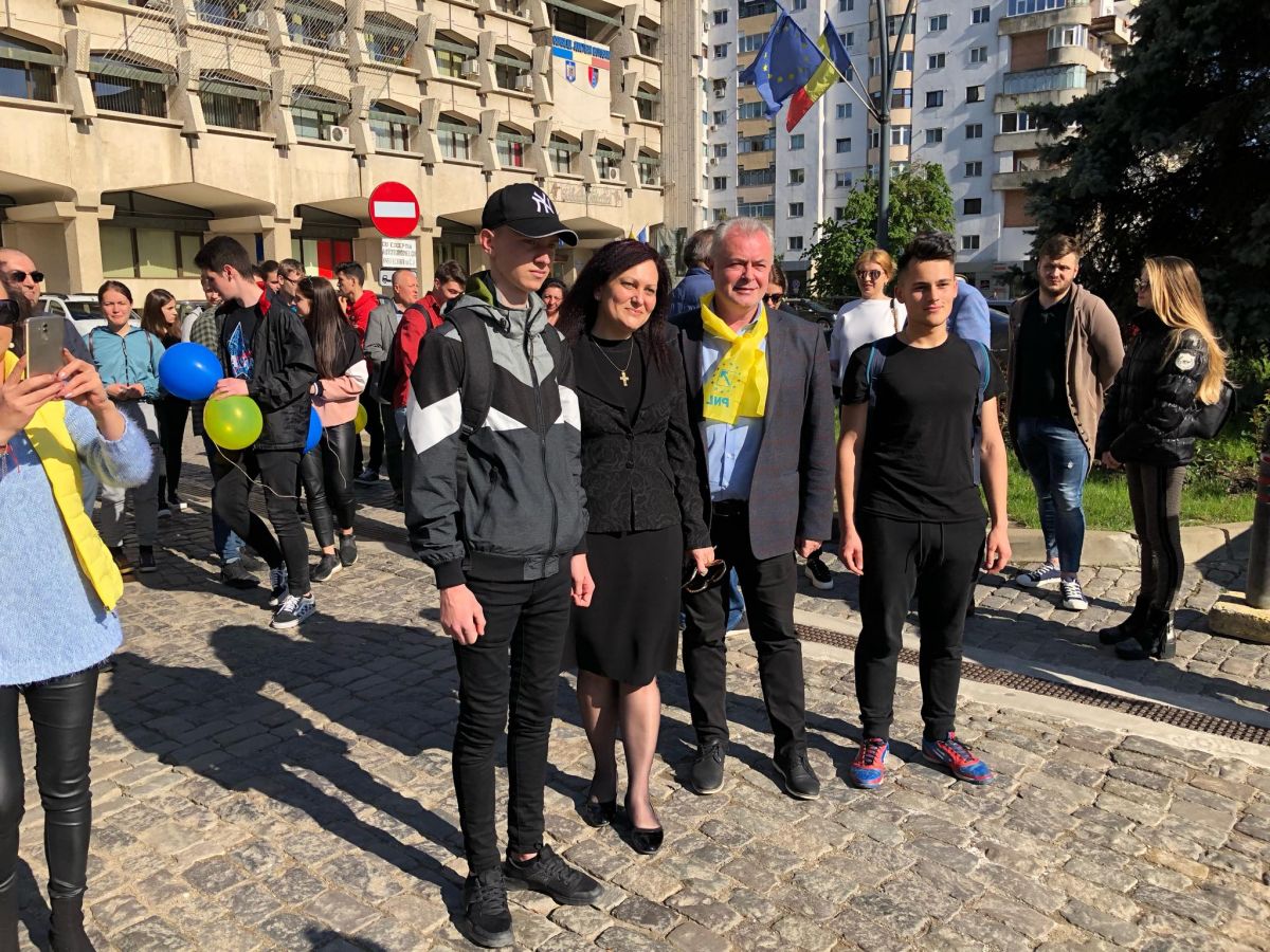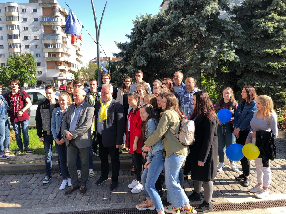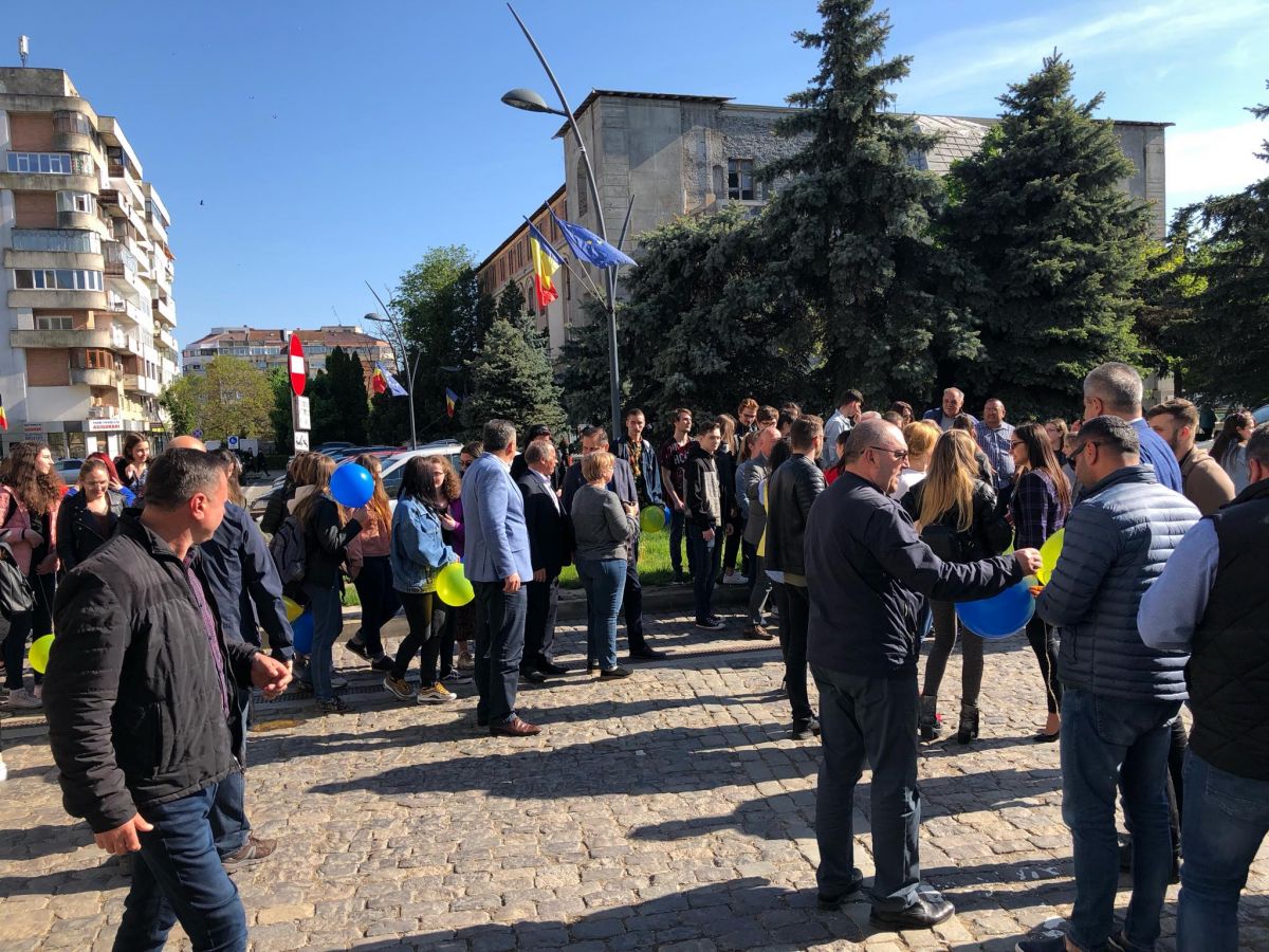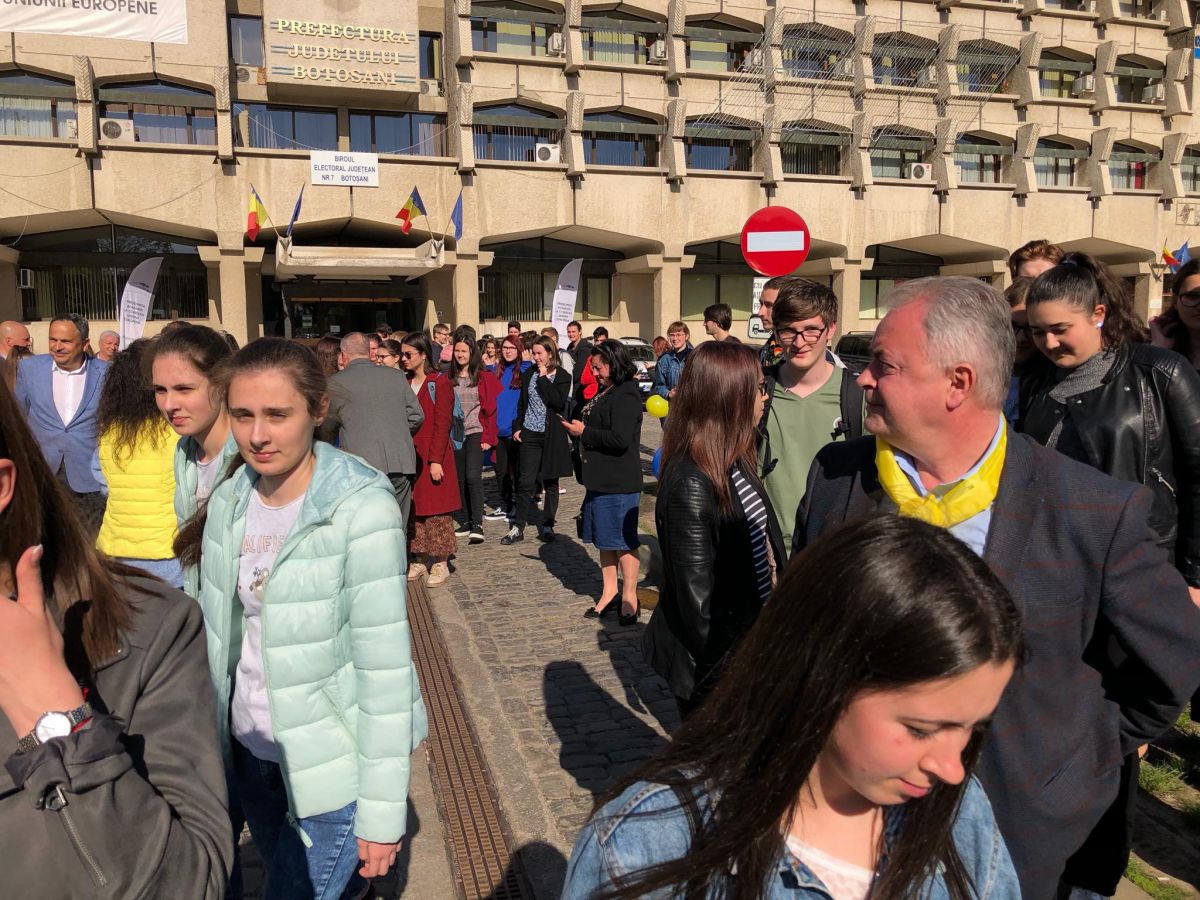 Un grup de elevi botoșăneni, împreună cu membri ai Partidului Național Liberal (PNL) au vrut să marcheze Ziua Europei și la Botoșani. Astfel, copii cu baloane de culoare galben și albastru, culori regăsite și pe steagul Europei au venit în fața Primăriei Botoșani din trei părți.
